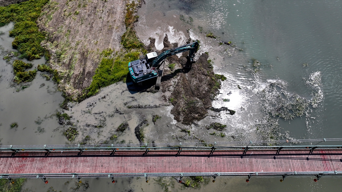 Nehirdeki yosunlar ve yüzeydeki atıklar ekiplerce temizleniyor.
