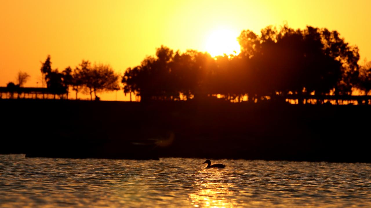Adana'da sabah saatlerinde güneşin doğuşu Seyhan Baraj Gölü'nde güzel görüntüler oluşturdu