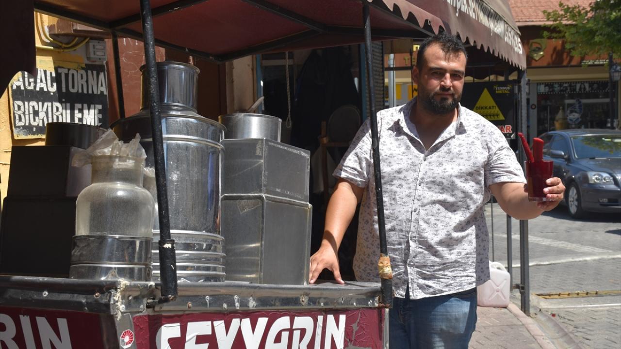 Karasoku Mahallesi`nde yaklaşık 15 yıldır seyyar tezgahta şalgam suyu satan Emrah Tilki, baba mesleğini devam ettirdiğini söyledi.