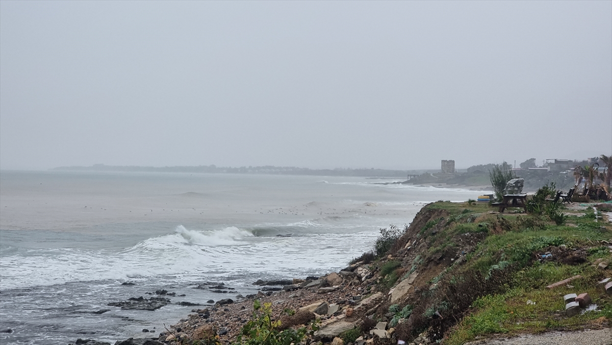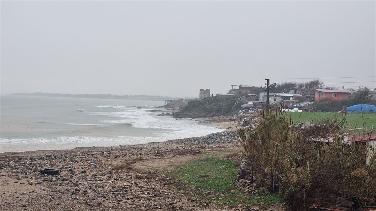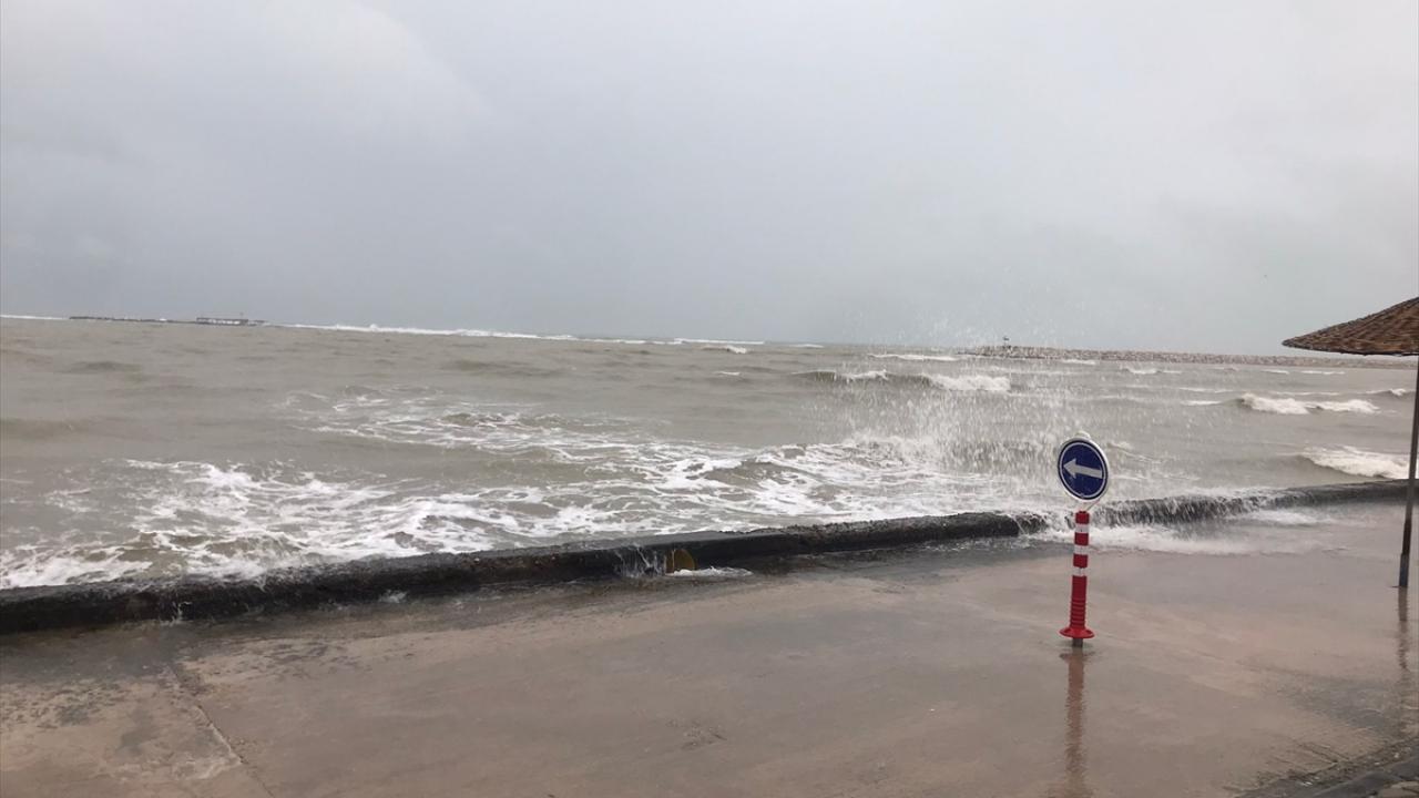 Karataş sahilinde yağış ve fırtınanın etkisiyle yükselen deniz suyu taştı.