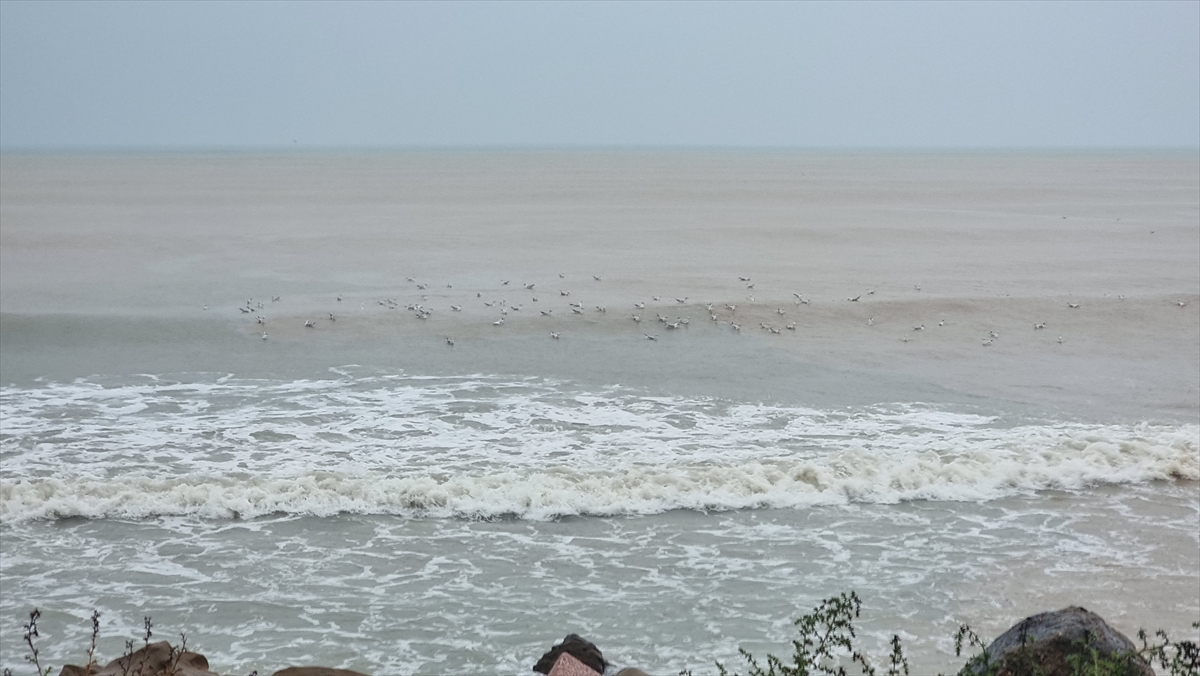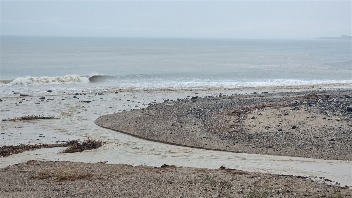 Yumurtalık ilçesinde de sağanak dolayısıyla derelerden akan çamurlu su, sahil boyunda denizin rengini kahverengiye dönüştürdü.