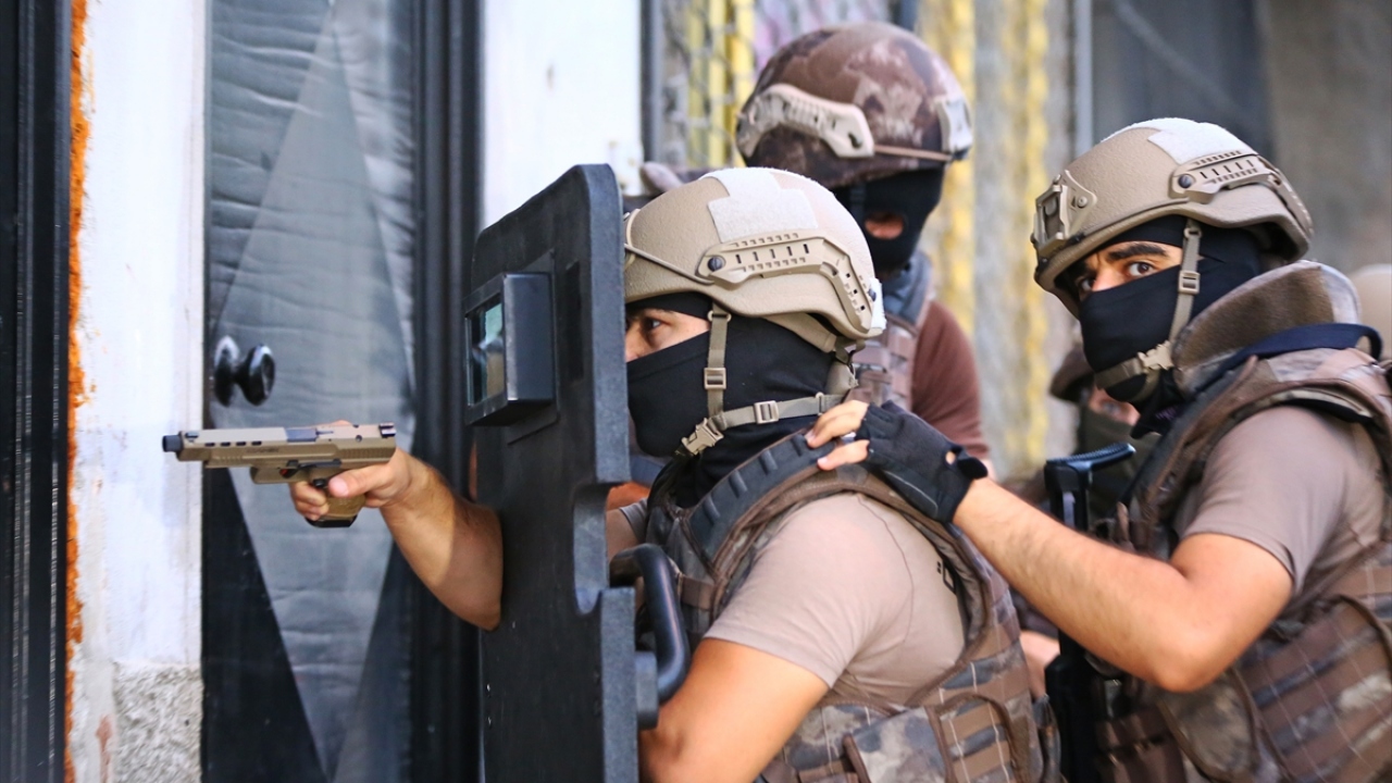 Operasyonda ekipler, kapılarını koçbaşı ile kırarak girdikleri evlerde narkotik köpekleriyle arama yaptı.
