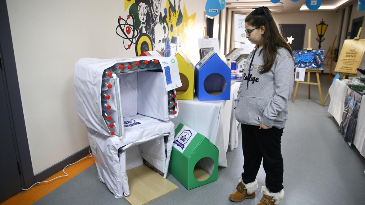 Bu kapsamda kentteki bir özel okulun öğrencileri, atık malzemeleri geri dönüşüme kazandırıp heykel, tablo, süs eşyası ve kıyafetler tasarladı.