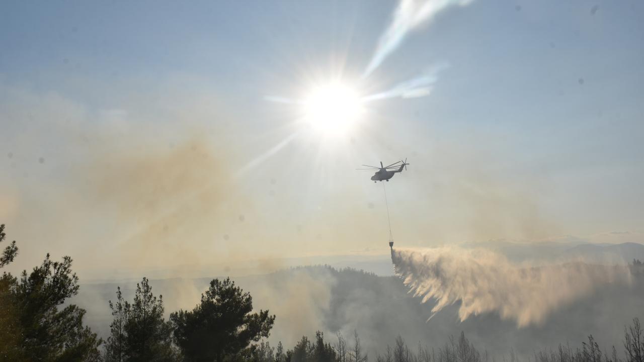 İhbar üzerine bölgeye Orman Bölge Müdürlüğüne bağlı 2 uçak, 8 helikopter, 50 arazöz, 30 su tankı ve yaklaşık 300 personel sevk edildi.