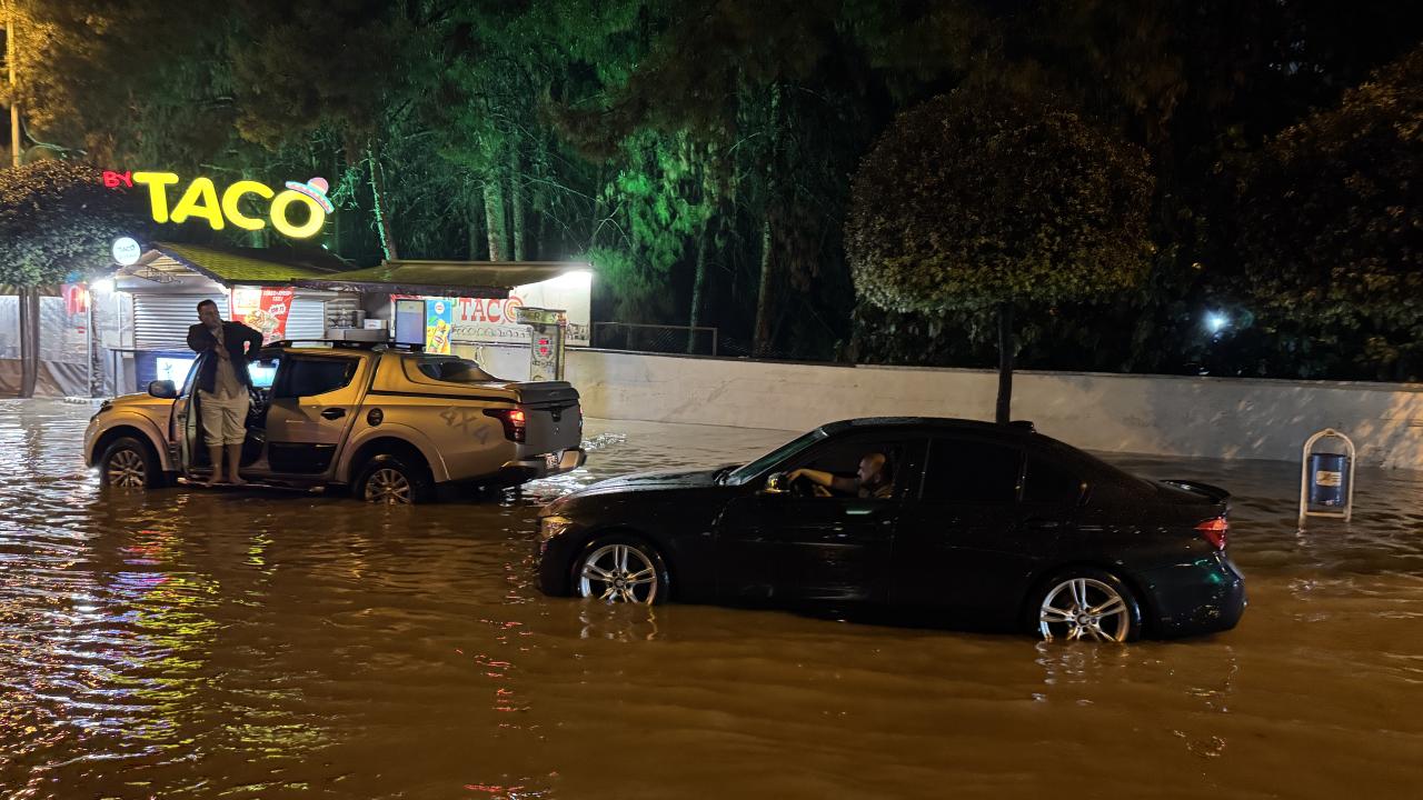Yağış nedeniyle bazı caddelerde araçlar mahsur kaldı.