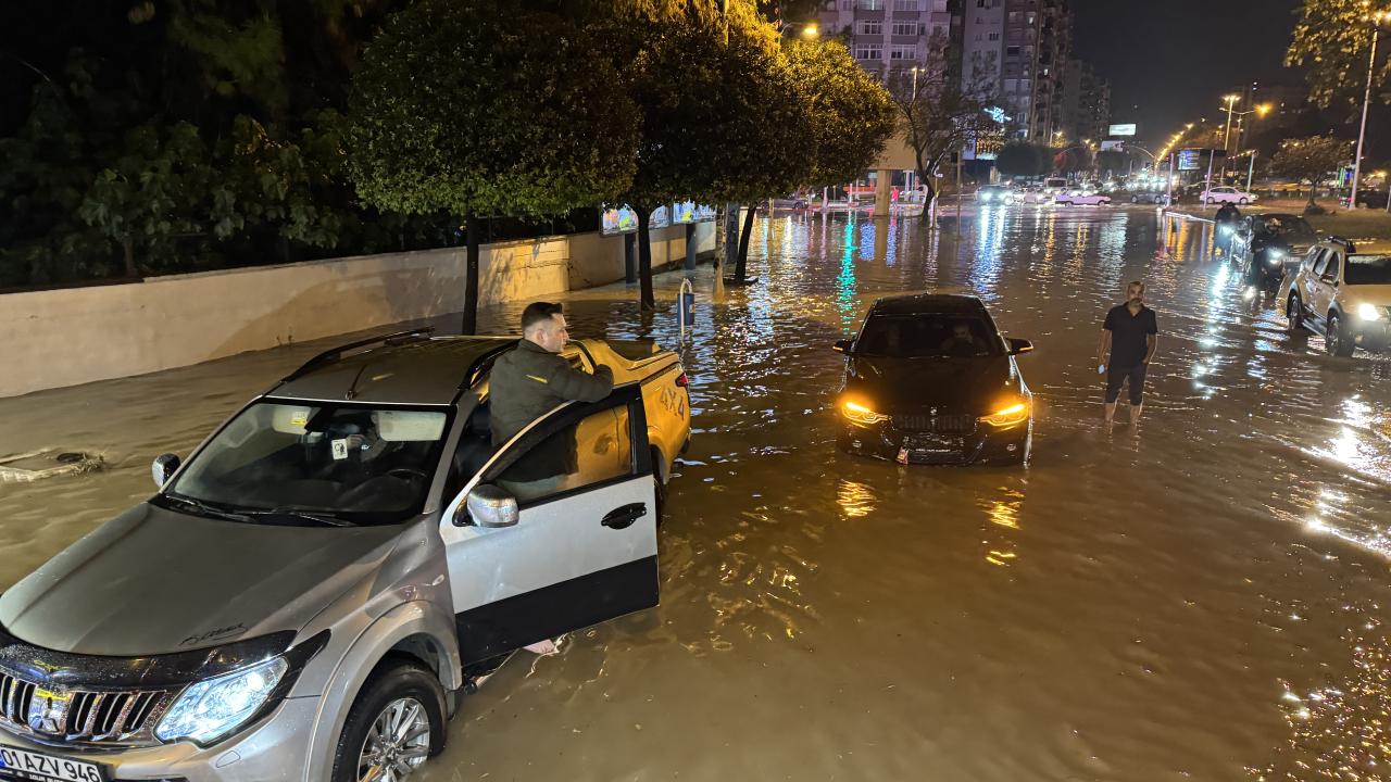 Adana'da sağanak: Cadde ve sokakları su bastı