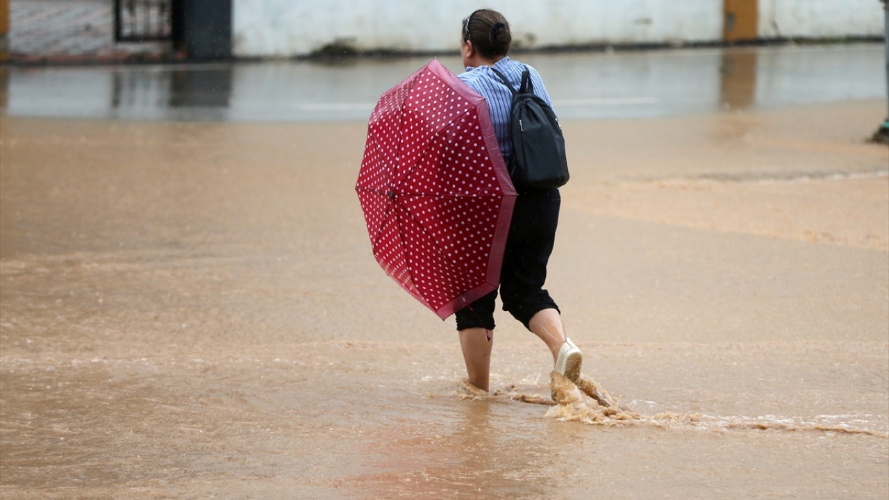 Ekipler, evinin bahçesi ve içi sağanak nedeniyle sular altında bulunan Döndü B`yi dışarı çıkardı.