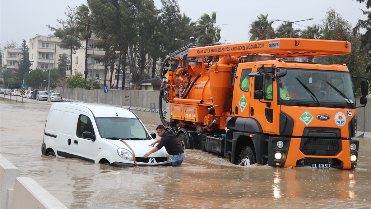 Adana'da kentte etkili olan sağanak sonucu oluşan su birikintileri hayatı olumsuz etkiledi.