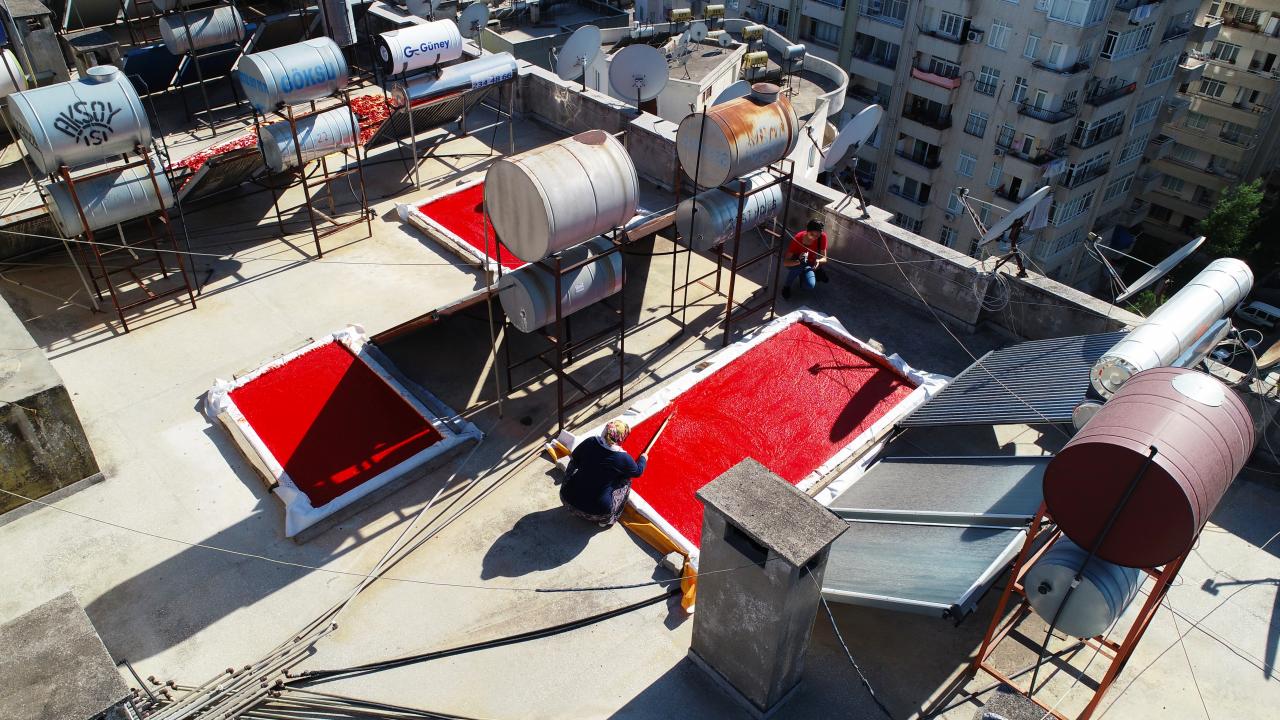 Adana’da salça sezonu başladı, damlar kırmızıya büründü