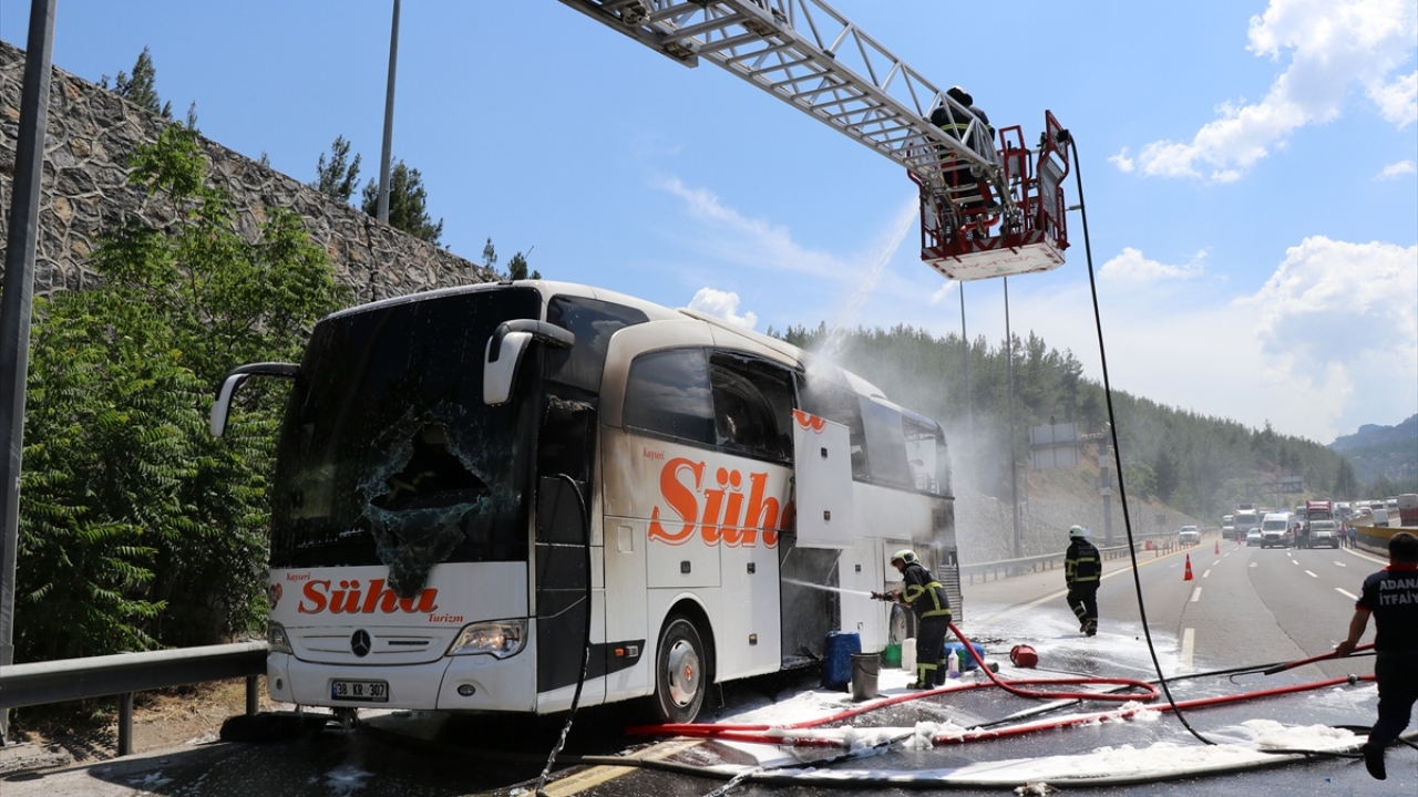 Adana'da seyir halindeki yolcu otobüsünde yangın