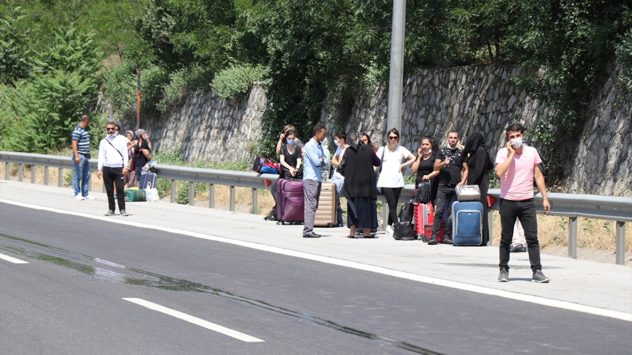 Araçtan dumanlar yükseldiğini fark eden sürücü otobüsü yol kenarına çekti.