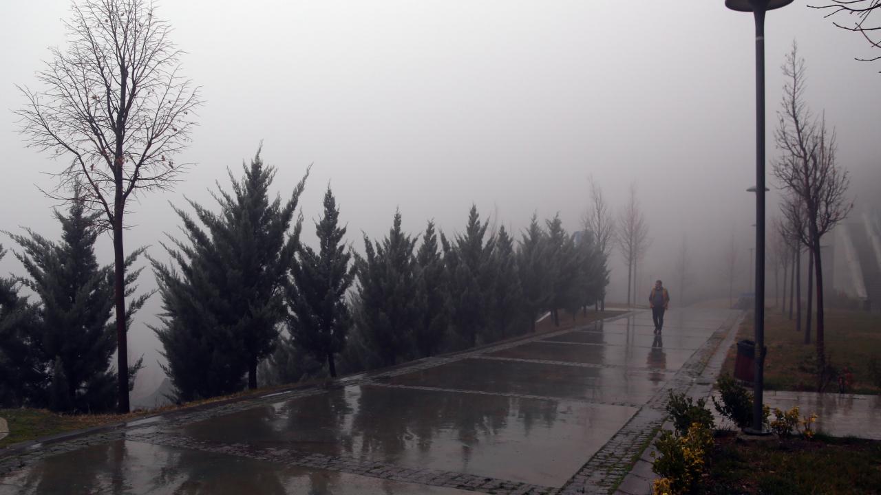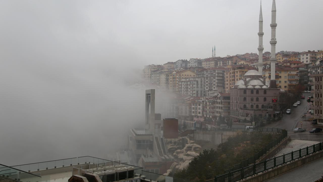 Ankara'nın yüksek kesimlerinde etkili olan sis, görüş mesafesini düşürdü.