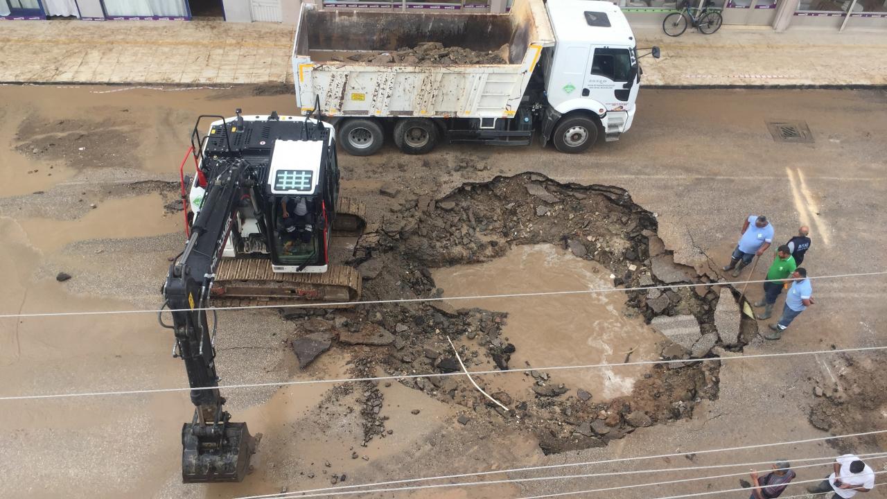 ASKİ ekiplerinin yol ve patlayan boruyu tamir çalışması sürüyor.