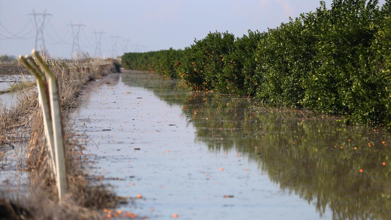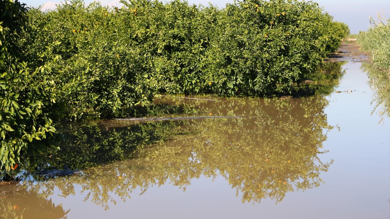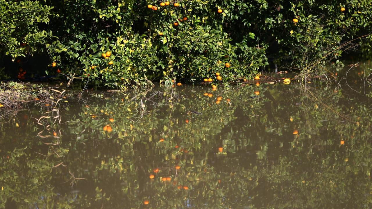 Su altında kalan narenciye bahçelerinde hem hasat gecikti hem de dökülen ürünler nedeniyle tarımsal zarar meydana geldi.