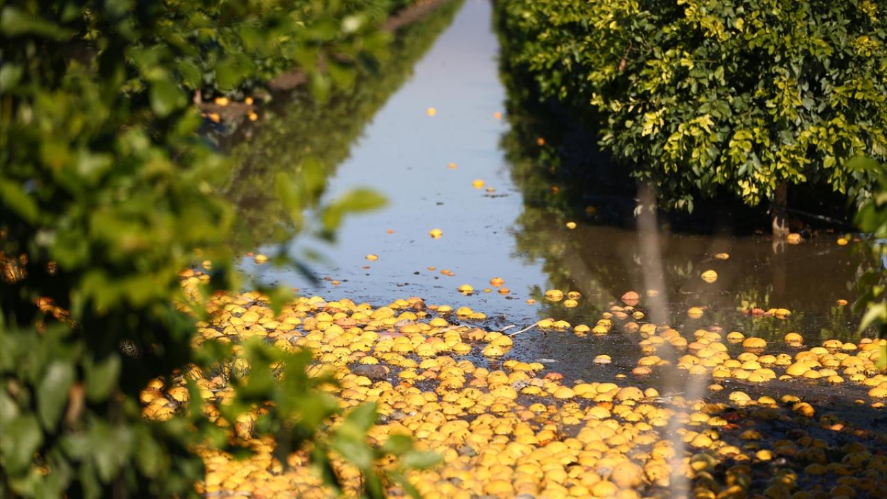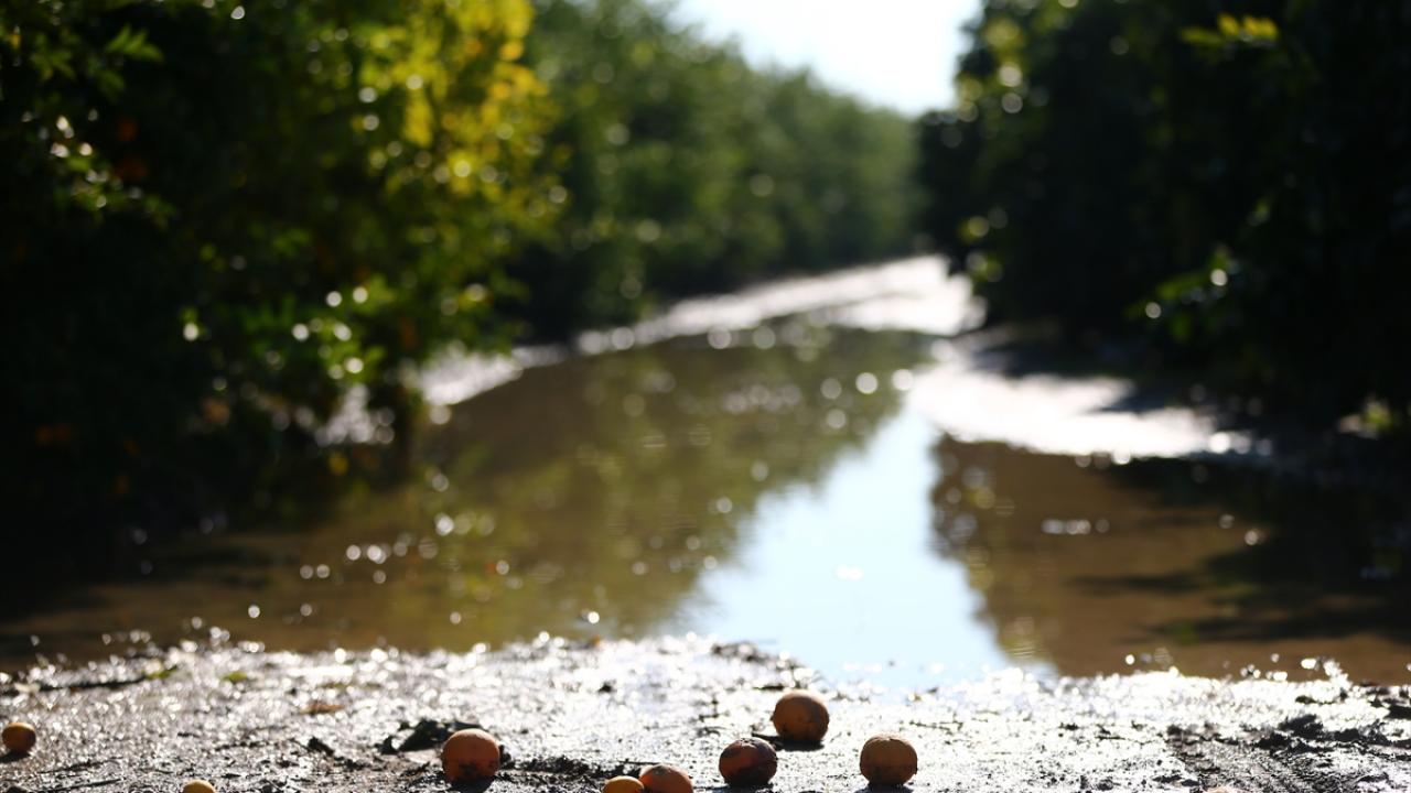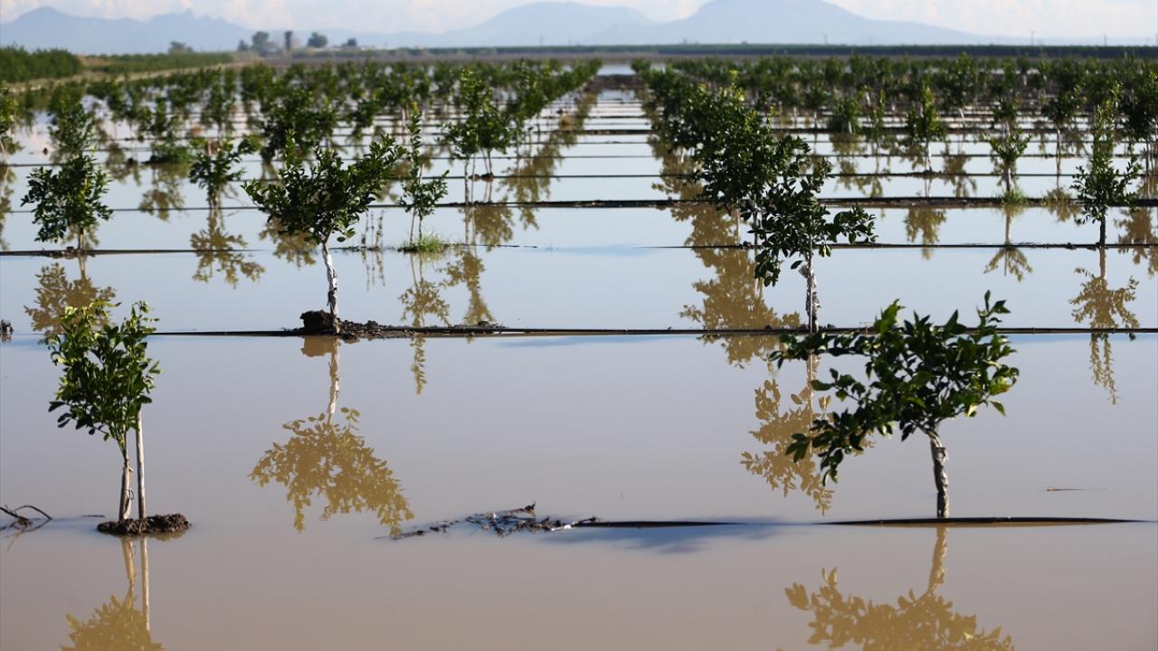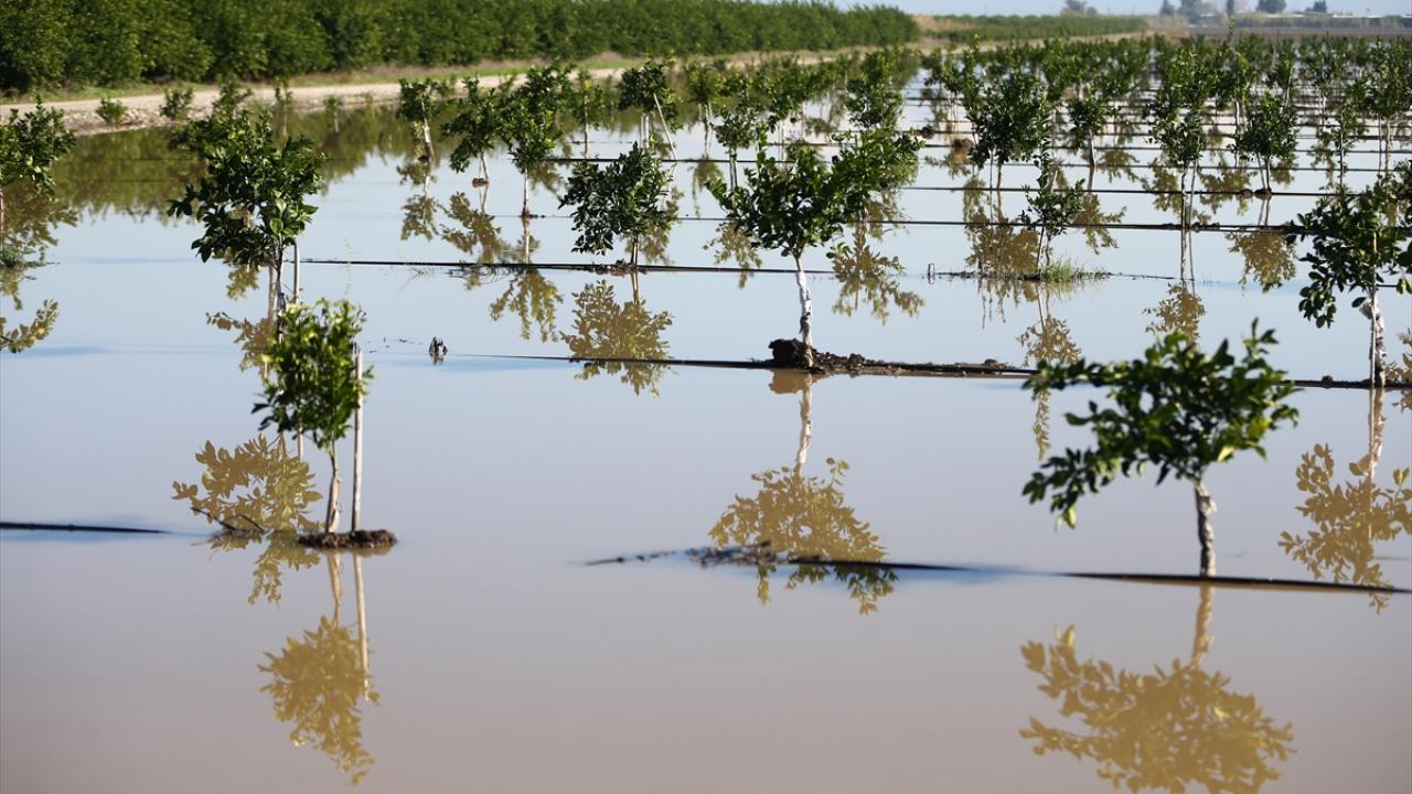 Su altında kalan narenciye bahçelerinde hem hasat gecikti hem de dökülen ürünler nedeniyle tarımsal zarar meydana geldi.