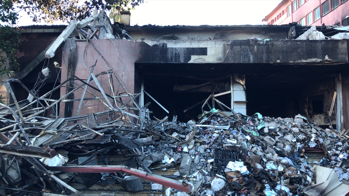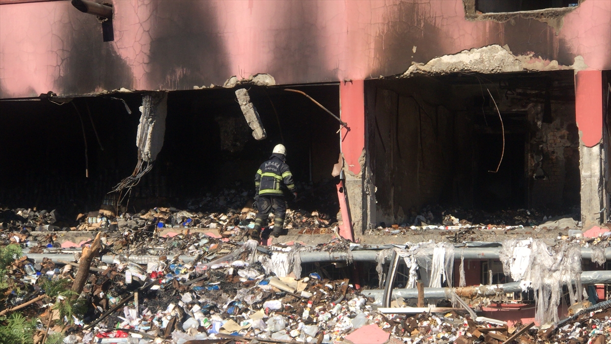 Yaklaşık 5 saatte kontrol altına alınabilen yangında büyük bölümü zarar gören binanın bazı kolonlarının da hasara uğradığı tespit edildi.
