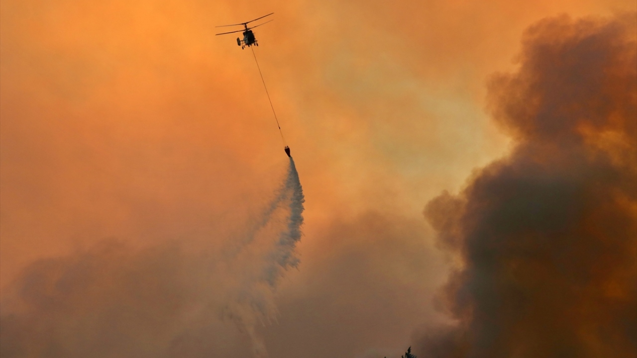 Bölgede sorti yapan 2 yangın söndürme uçağı ve 6 yangın söndürme helikopteri, alevlerin ilerlemesini durdurmaya çalışıyor.