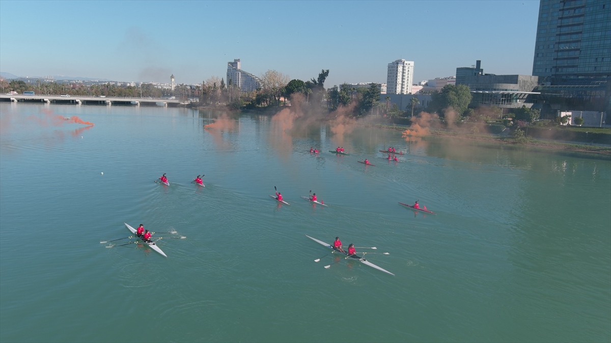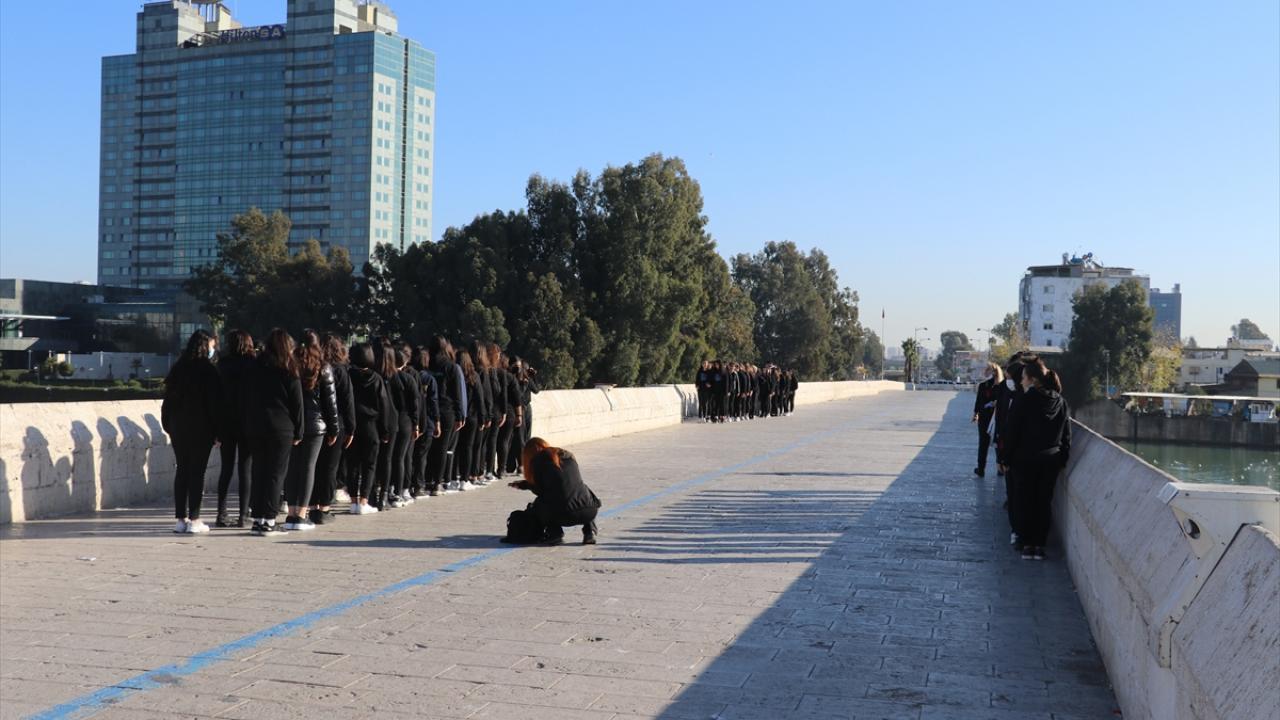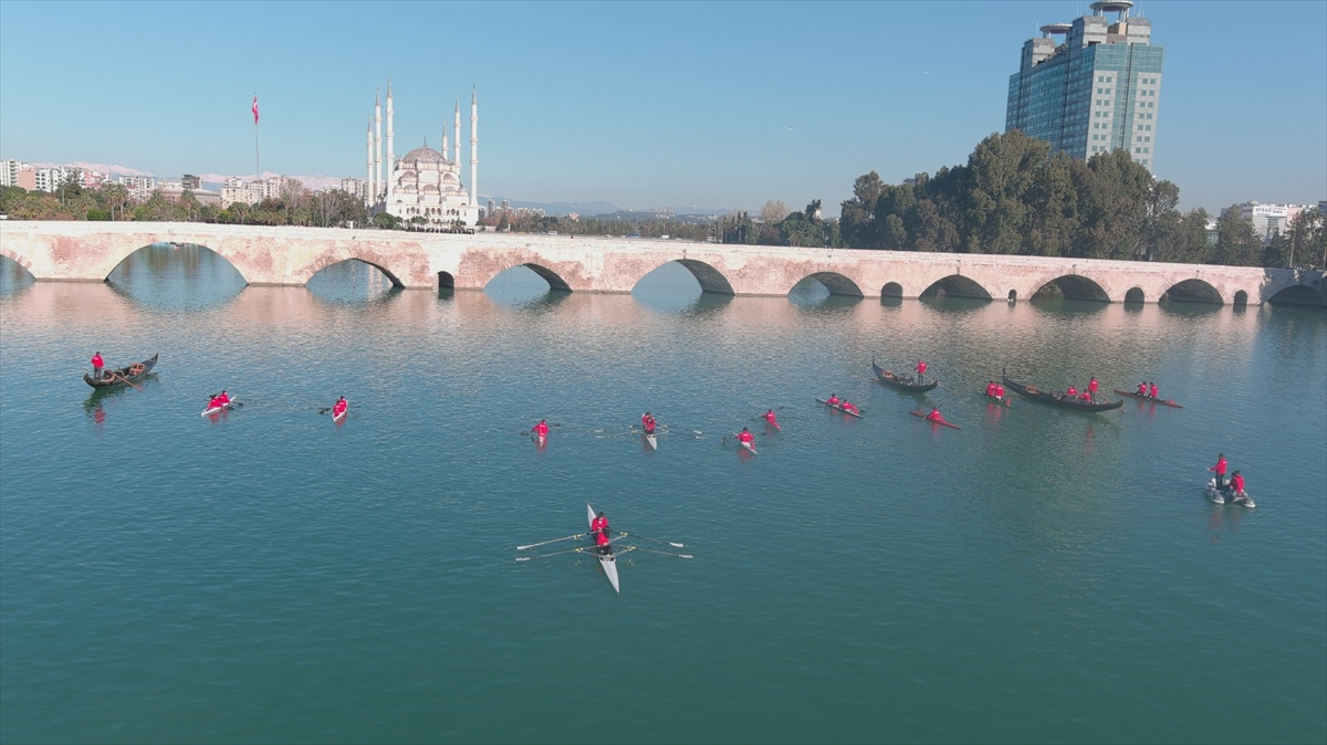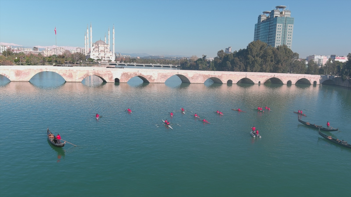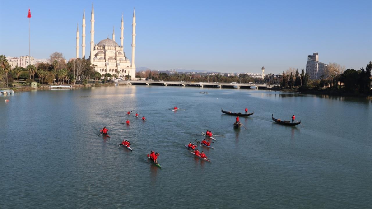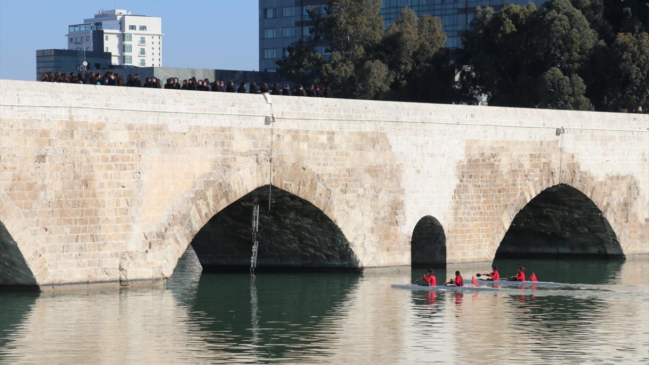 Adana'nın düşman işgalinden kurtuluşunun 100. yıl dönümü dolayısıyla lise öğrencileri, kano sporcularının eşliğinde tarihi Taşköprü üzerinde koreografi sergiledi.