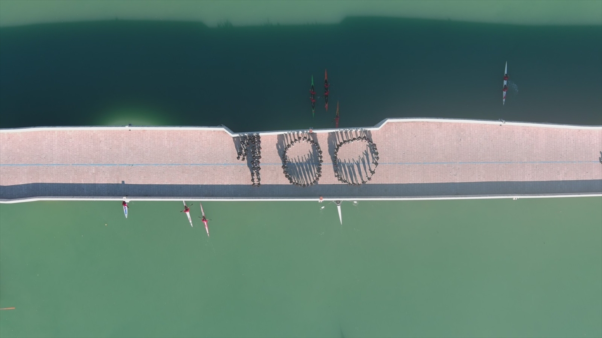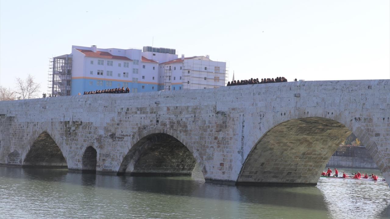 Öğrencilerin gösterisi sırasında Gençlik ve Spor Müdürlüğü bünyesindeki 18 kişilik kano-kürek takımı da köprü altından geçerek gösteriye eşlik etti.