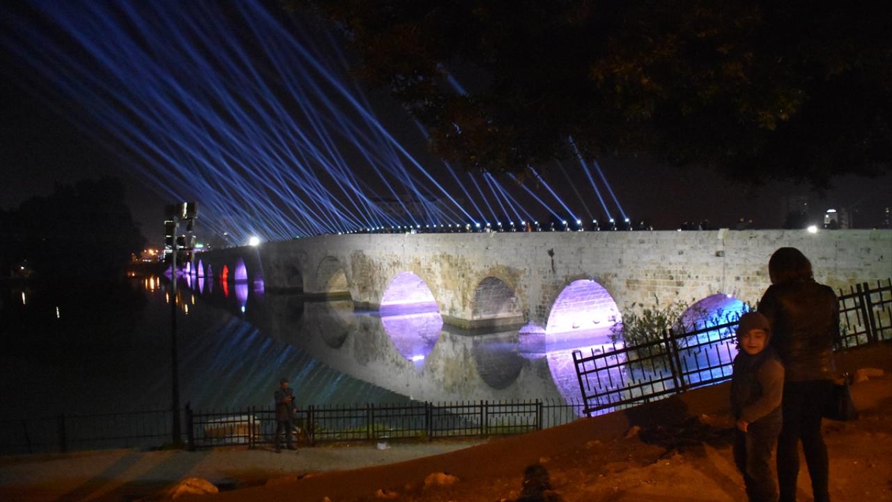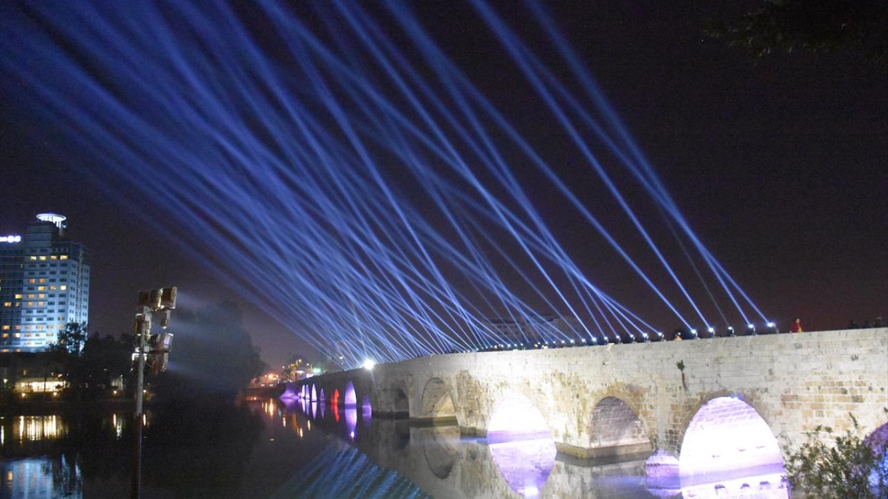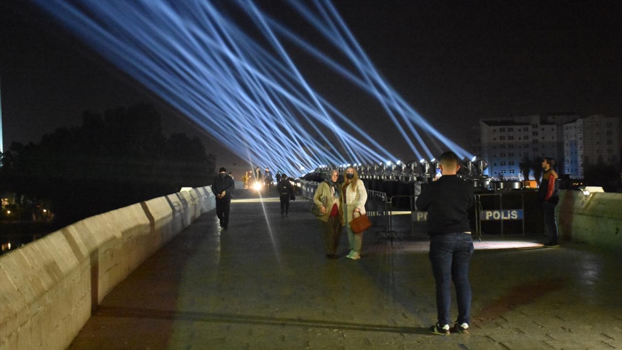Bu kapsamda, Merkez Seyhan ilçesinde bulunan Tarihi Taş Köprü üzerinde lazer gösterisi düzenlendi.