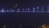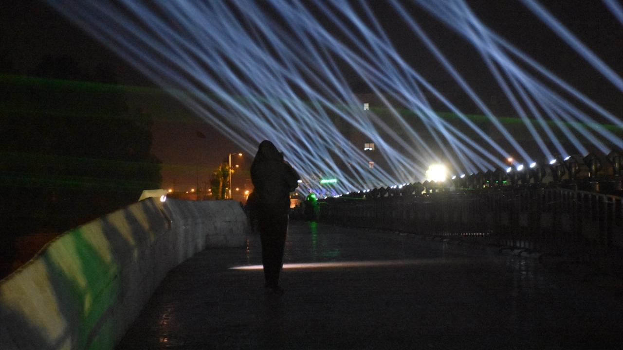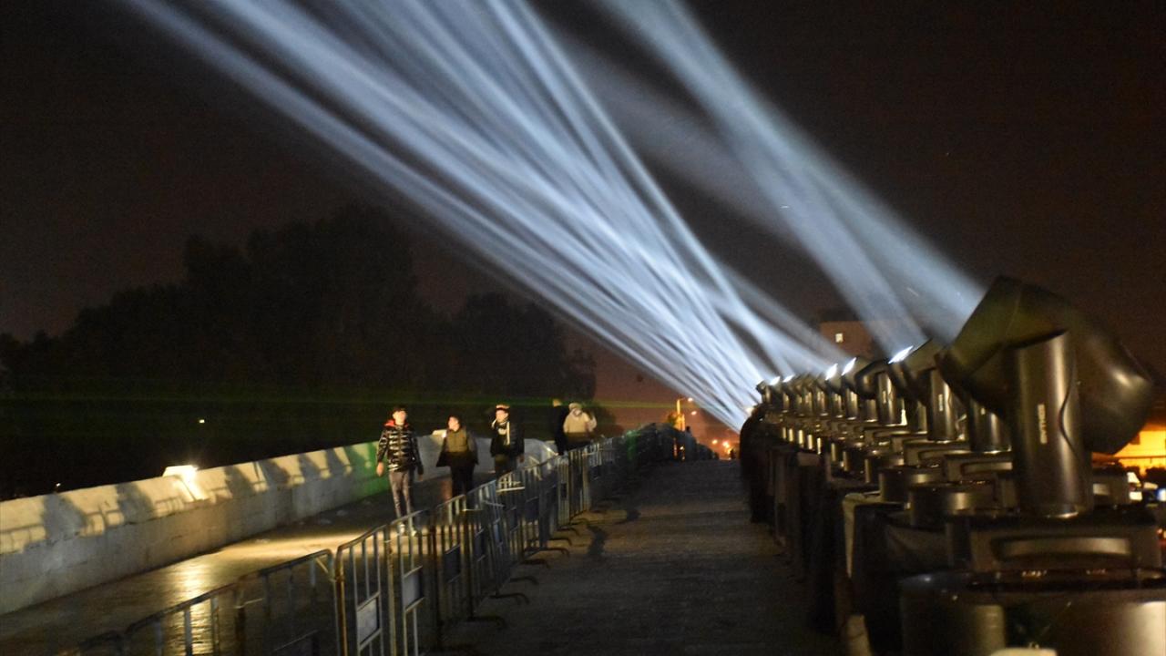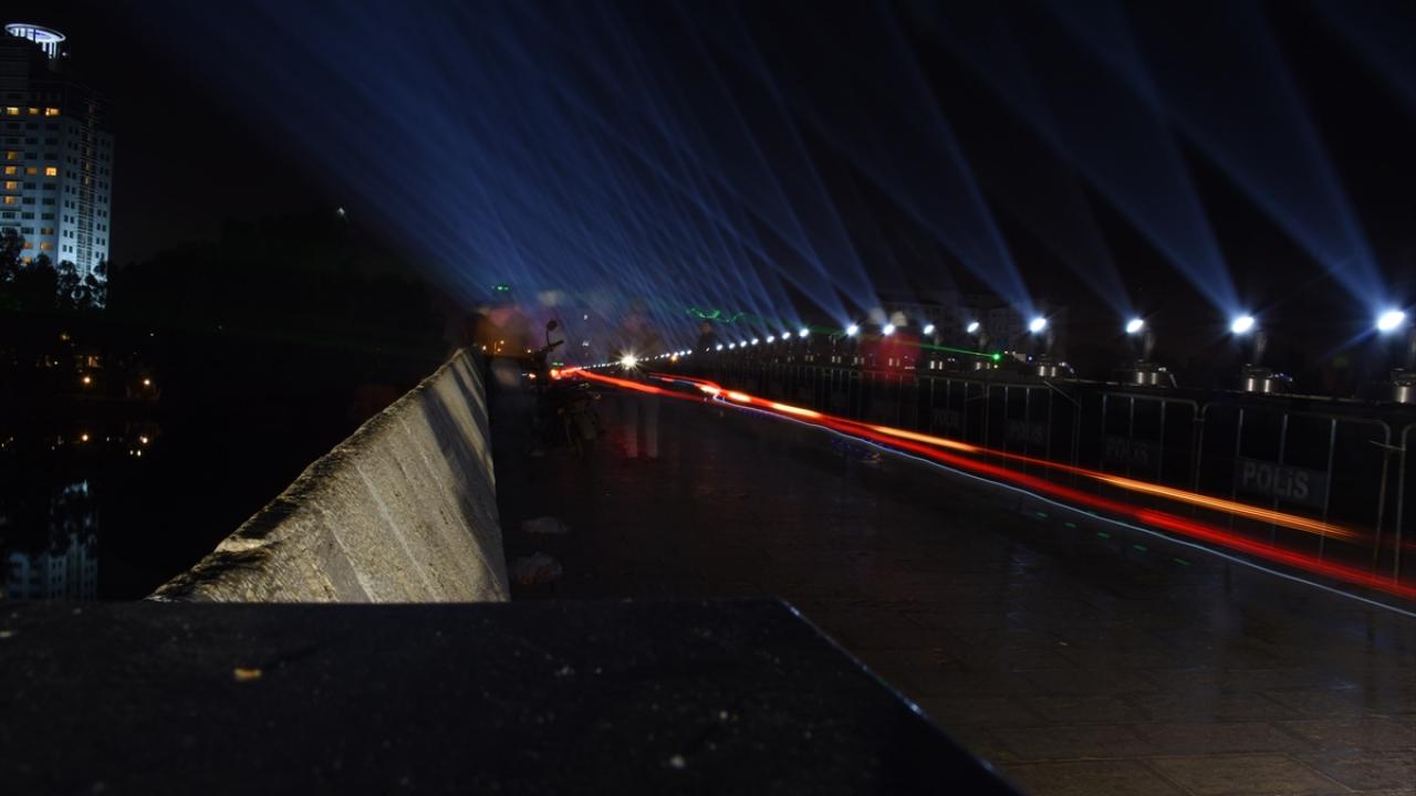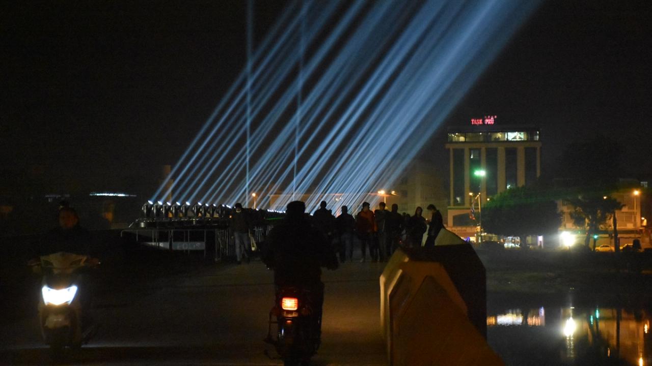 Vatandaşlar, köprü üzerinde yapılan lazer gösterisini izledi.