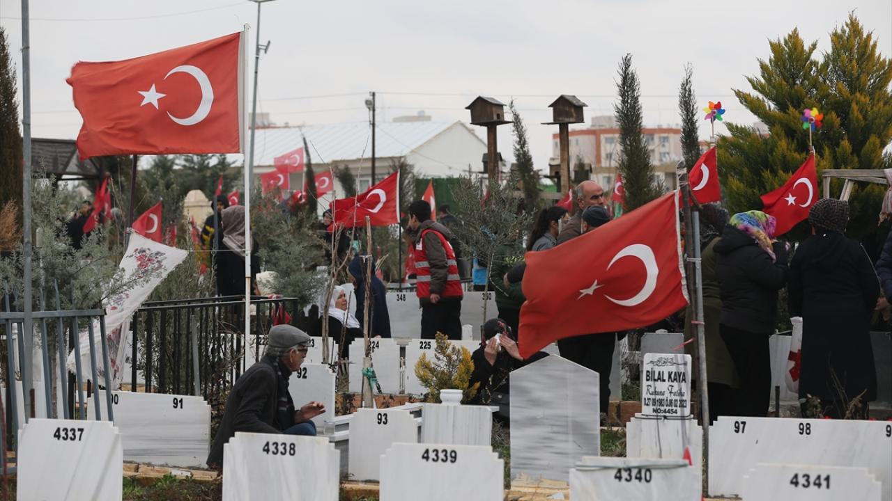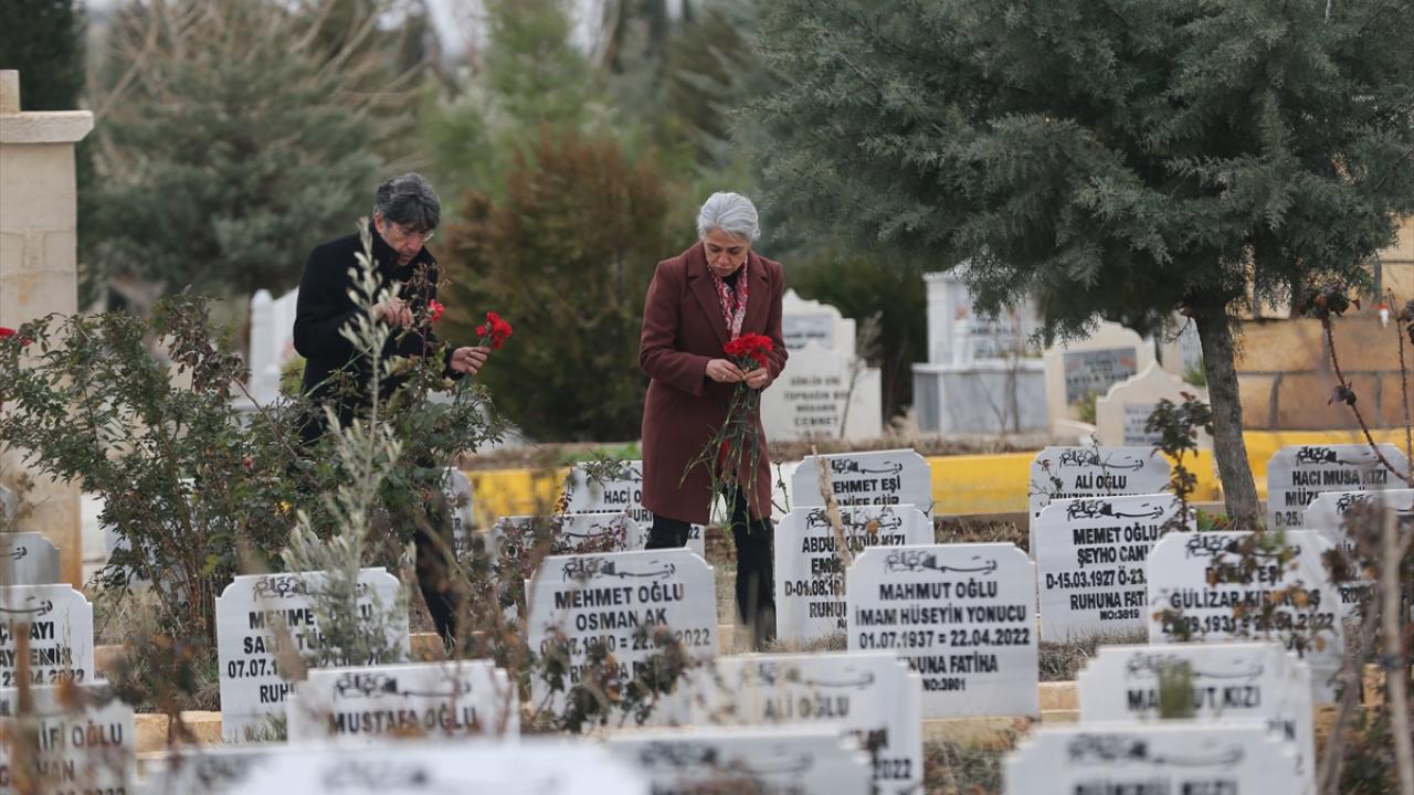 Yeni Mezarlık`taki "Deprem Şehitliği"ne giden vatandaşlar, yakınlarının kabirlerinde dua edip Kur`an-ı Kerim okudu.