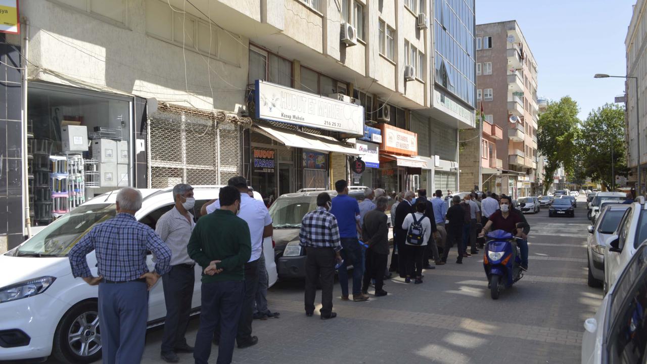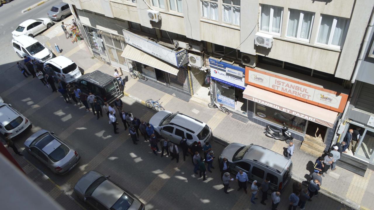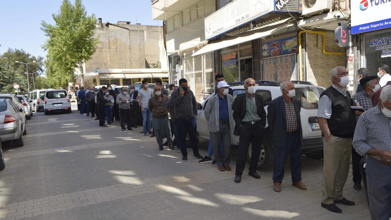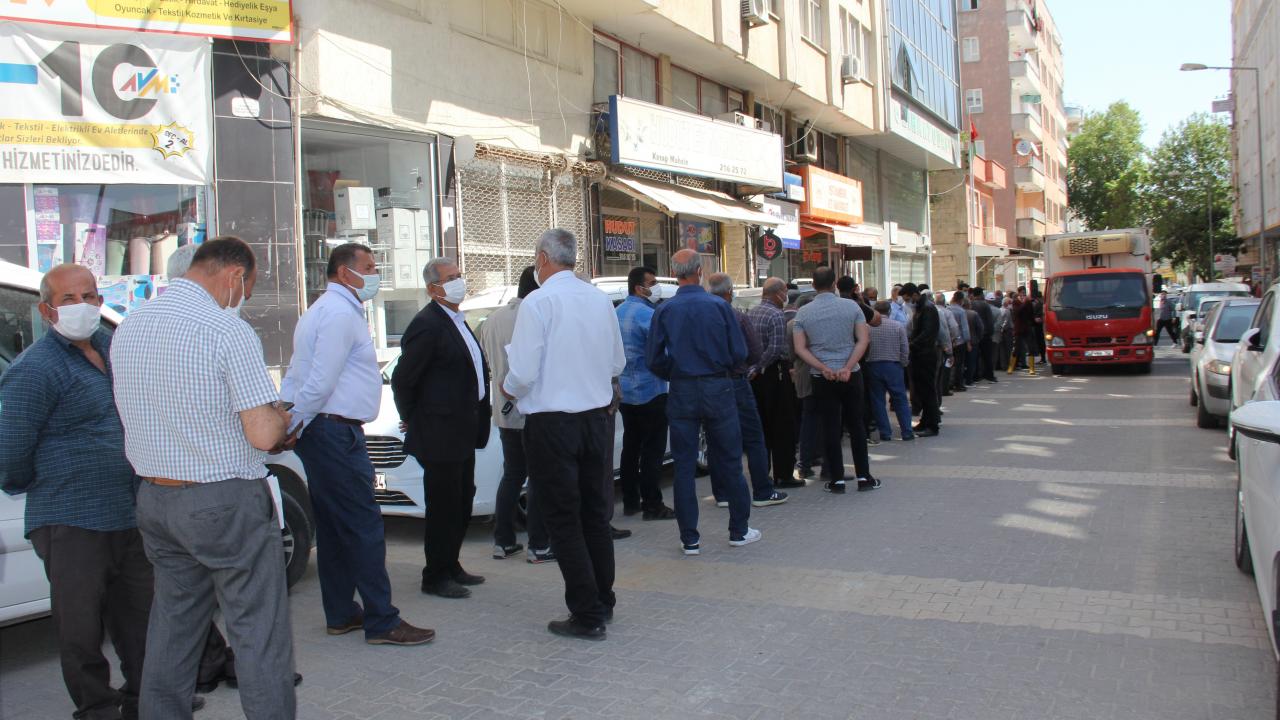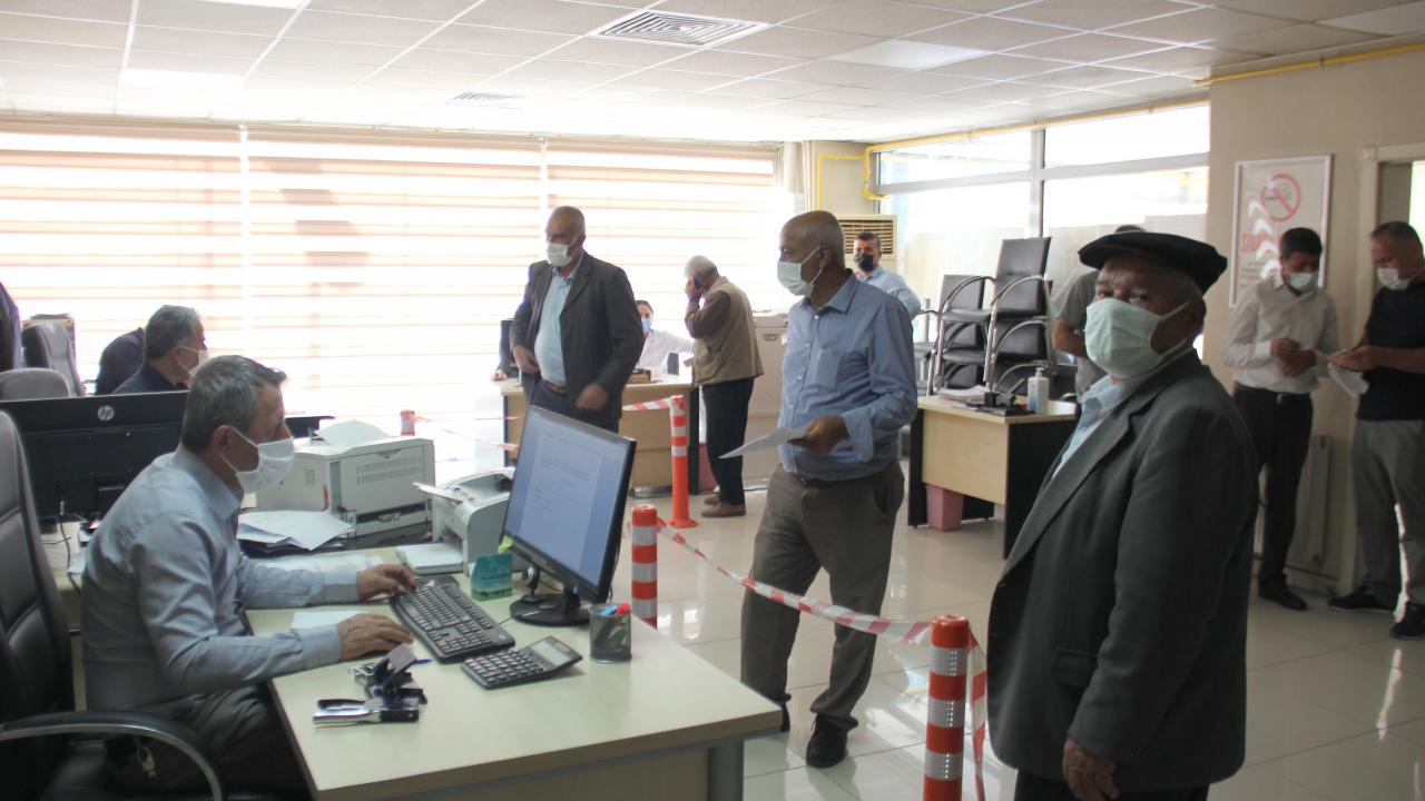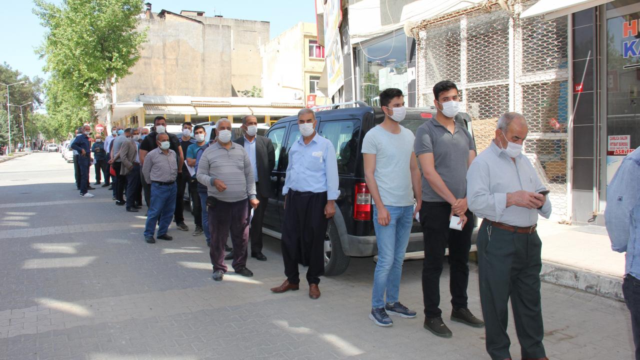 Çiftçi Kayıt Sistemi belgesi alarak kısıtlama süresince tarımsal faaliyetlerini sürdürmek isteyenler, sabah erken saatlerden itibaren Turgut Reis Mahallesi`nde bulunan Ziraat Odası önüne gelerek kuyruklar oluşturdu.