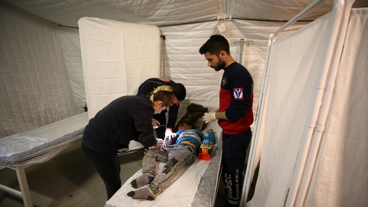Kahramanmaraş merkezli depremlerden etkilenen Adıyaman'da depremzedelerin yaraları, bölgede kurulan, ameliyathane, yoğun bakım ve müşahede alanlarına sahip sahra hastanelerinde sarılıyor.