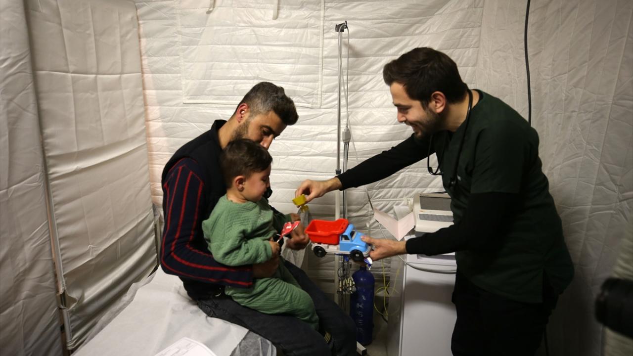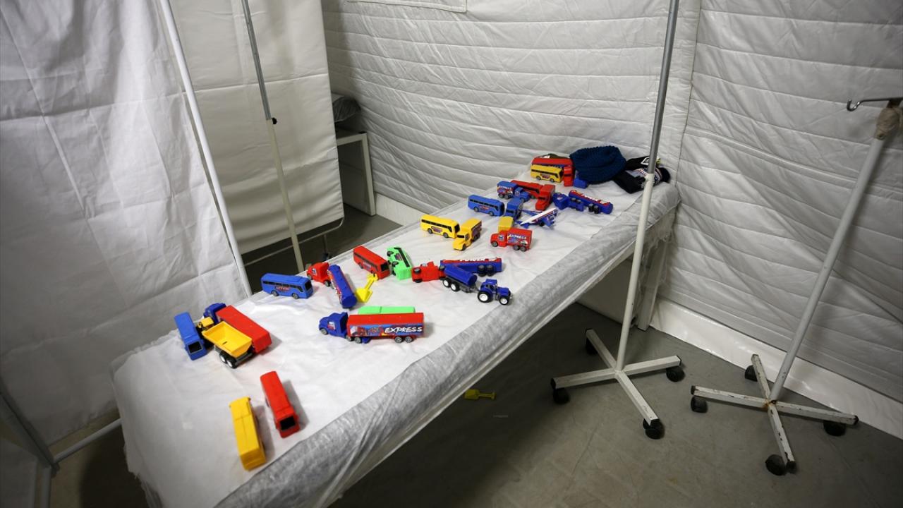 Günlük ortalama 500 afetzedenin tedavi edildiği hastanelerde, sağlık çalışanları hayırseverlerin gönderdiği oyuncakları da muayene olmaya gelen çocuklara hediye ediyor.