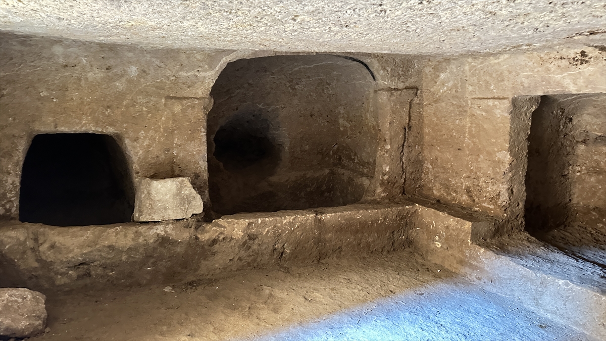 Başlatılan kazı çalışmasında oda mezar içerisinde tapınma alanı ve 5 mezar gün yüzüne çıkarıldı.