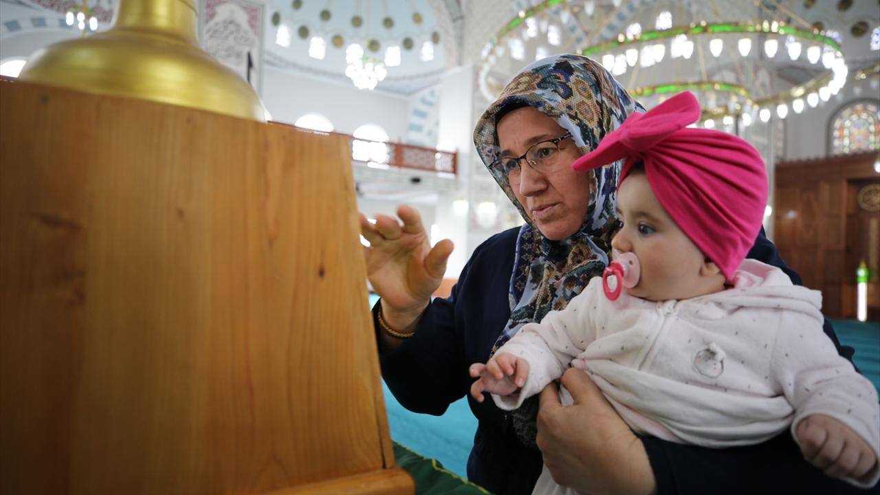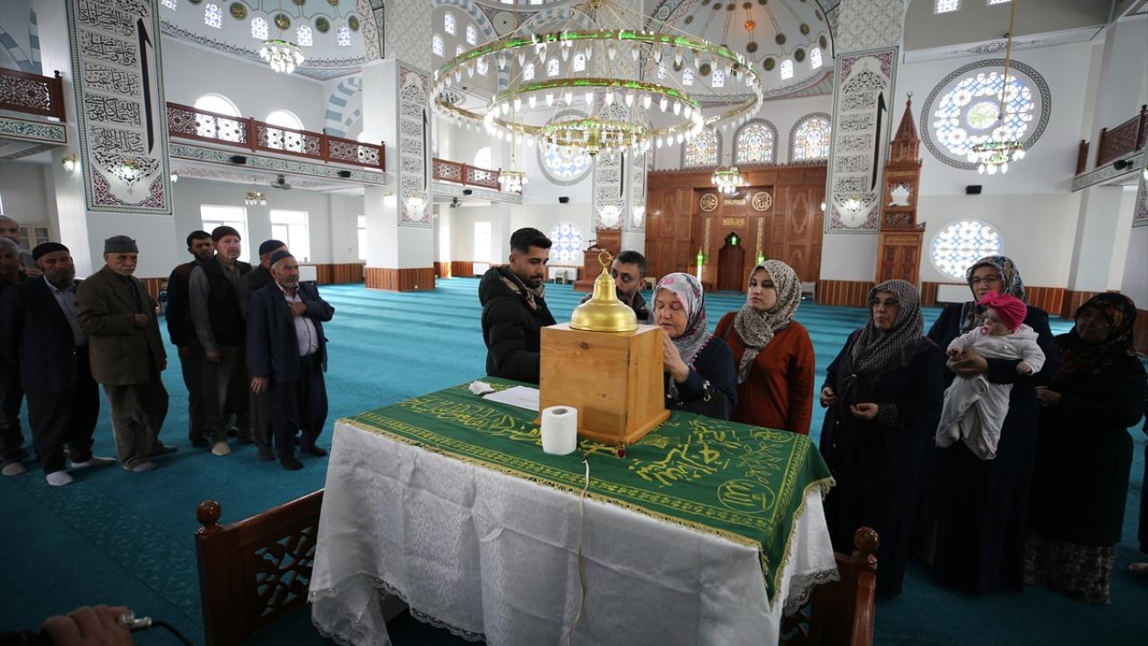 Emir Sultan Camii`nde ikindi namazına gelen cemaat, Sakal-ı Şerif`i görmek için yoğunluk oluşturdu.