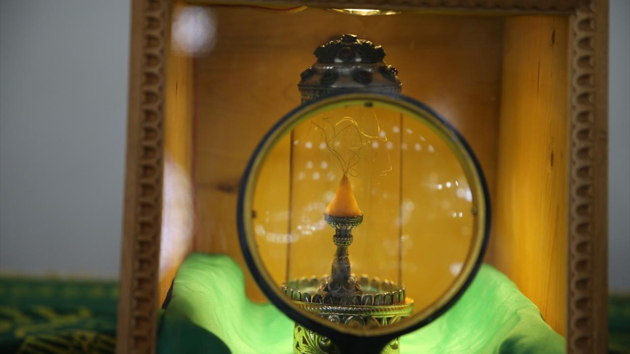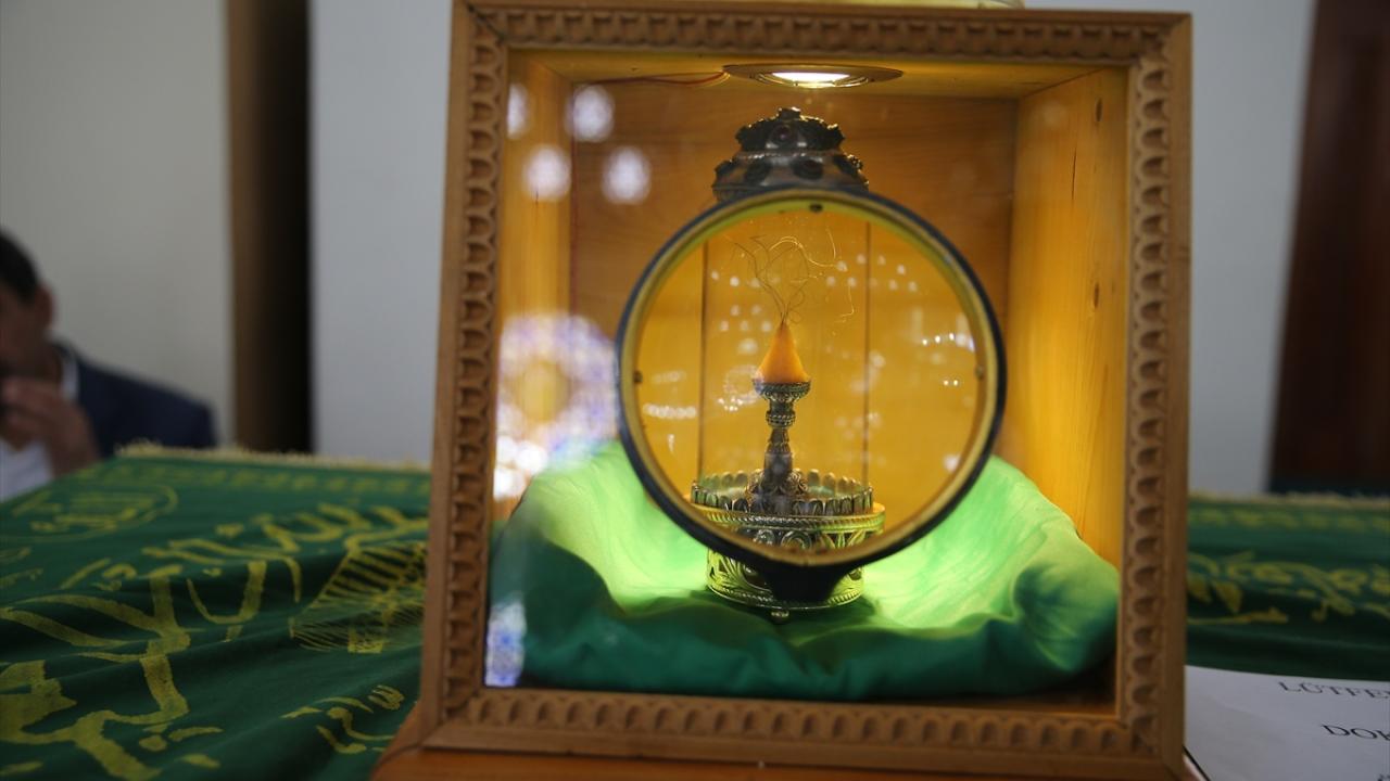 Sıraya giren vatandaşlar, cam fanustaki Sakal-ı Şerif`in önünden geçerken salavat getirip dua etti.