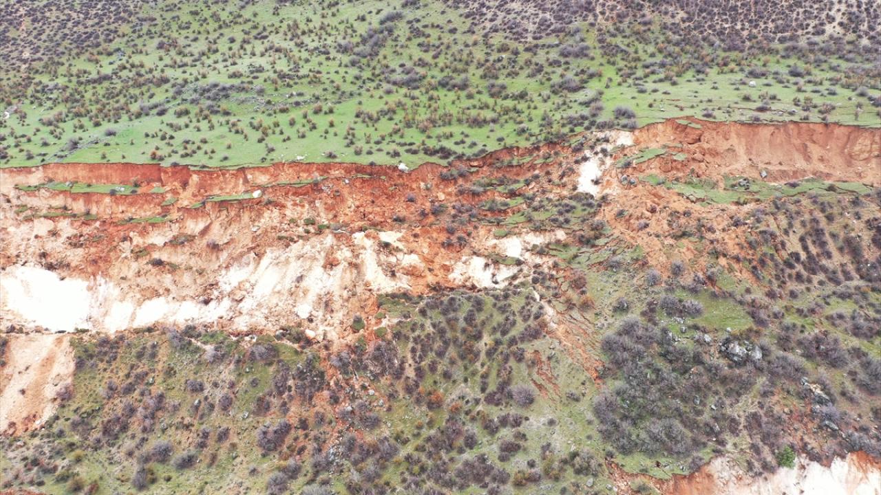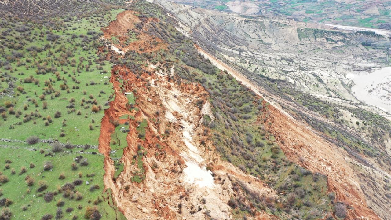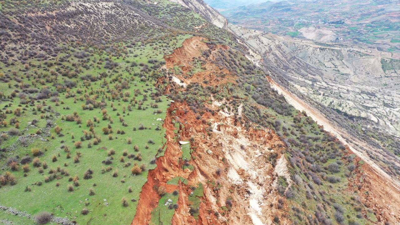 Tut ilçesine bağlı Yaylımlı köyünün güneyinde bulunan Çekirge Dağı`nda da depremin etkisiyle yarıklar oluştu, bazı yerlerde ise toprak kayması yaşandı. Deprem sonrası toprak kayması ve sel nedeniyle yayaların kullanımına kapanan bölge dronla görüntülendi.