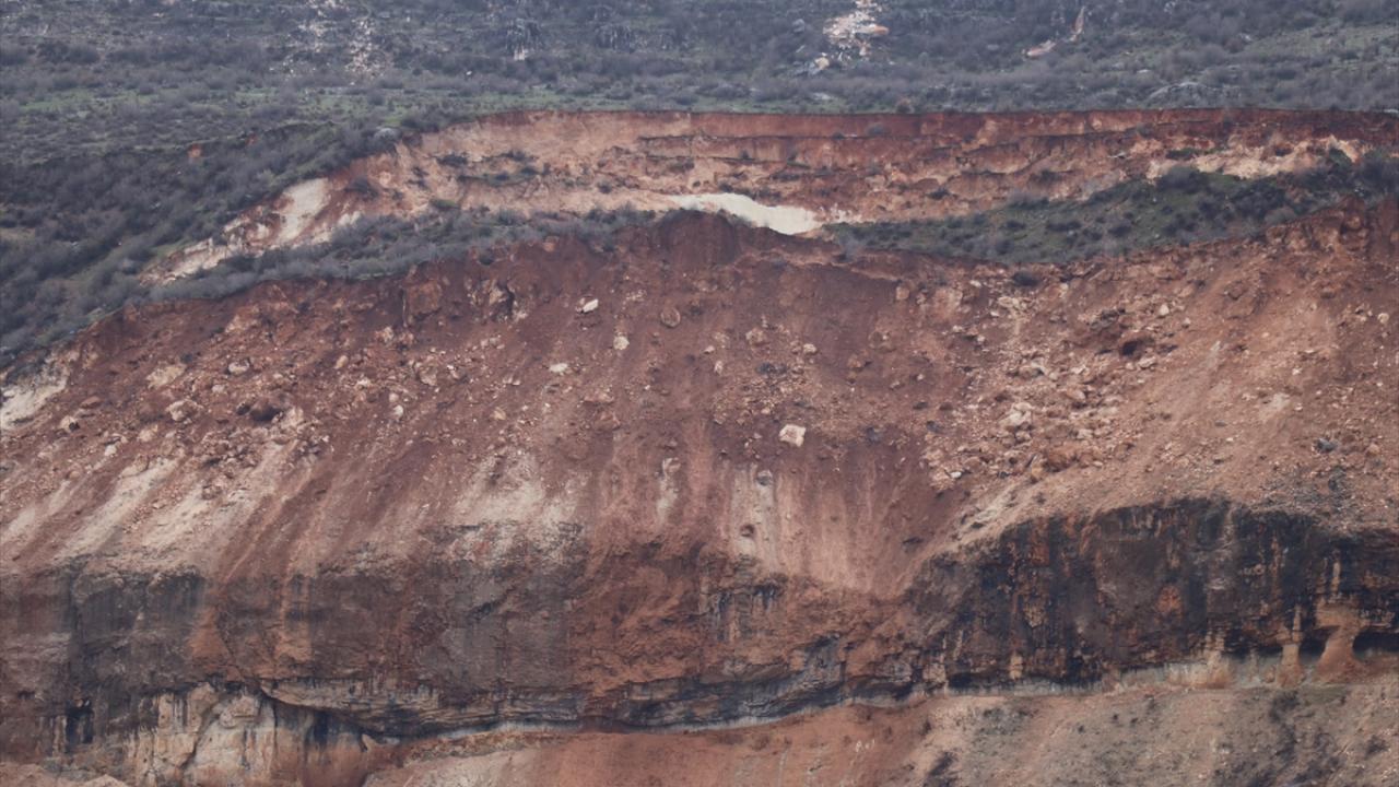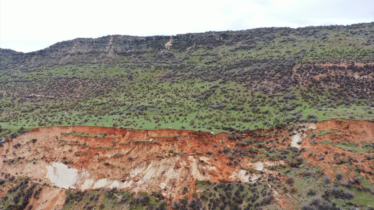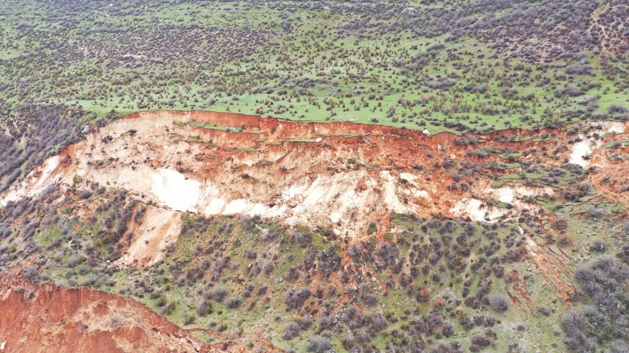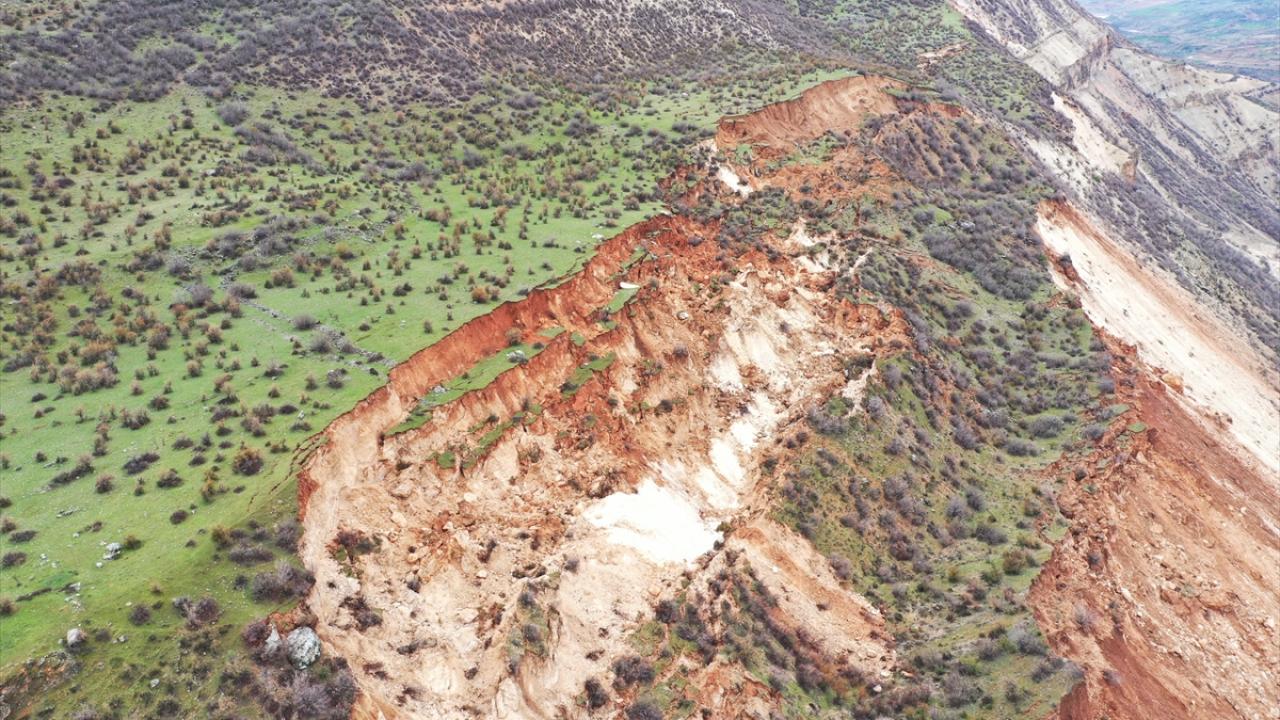 Tut ilçesine bağlı Yaylımlı köyünün güneyinde bulunan Çekirge Dağı`nda da depremin etkisiyle yarıklar oluştu, bazı yerlerde ise toprak kayması yaşandı. Deprem sonrası toprak kayması ve sel nedeniyle yayaların kullanımına kapanan bölge dronla görüntülendi.