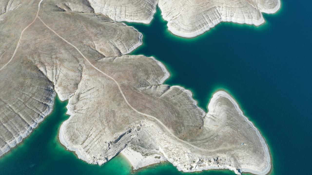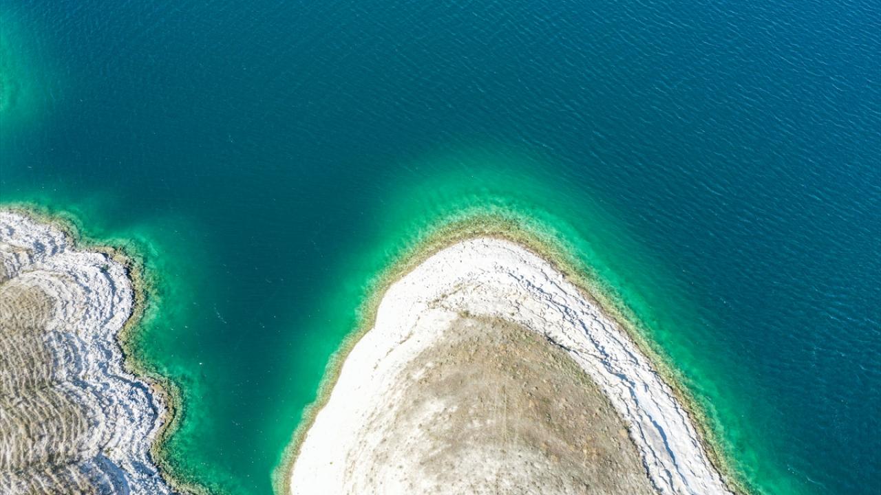 Baraj gölü içinde oluşan adalar, toprağının beyazı ve turkuaz rengi sularıyla Maldivler’i andırıyor.