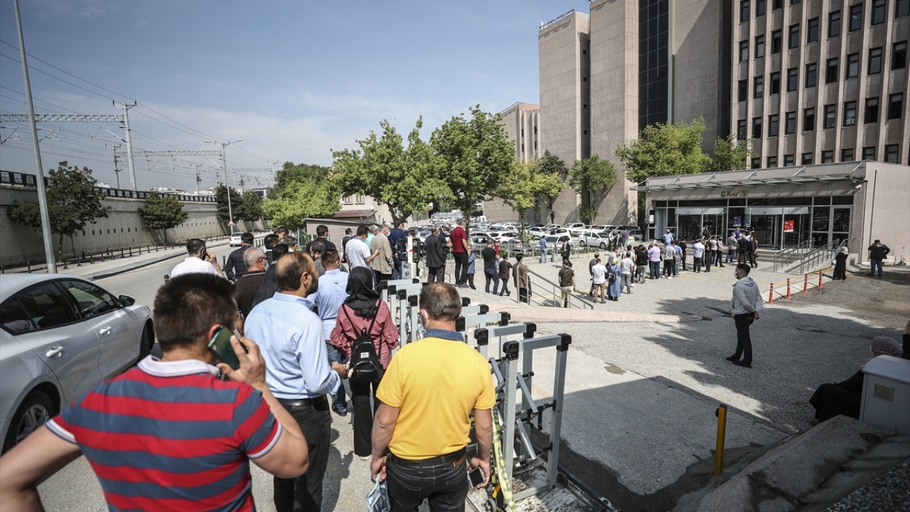 Güvenlik görevlileri, kuyruktakileri sosyal mesafeye uymaları konusunda uyardı. Adliyede işi olmamasına rağmen yakınlarına eşlik etmek üzere gelen kişiler içeri alınmadı.