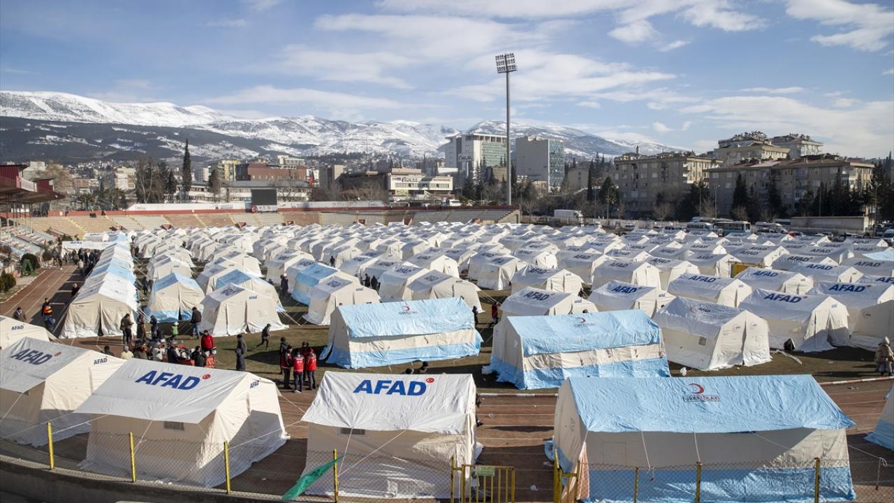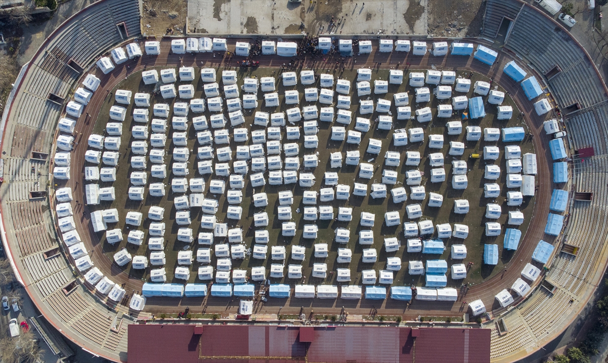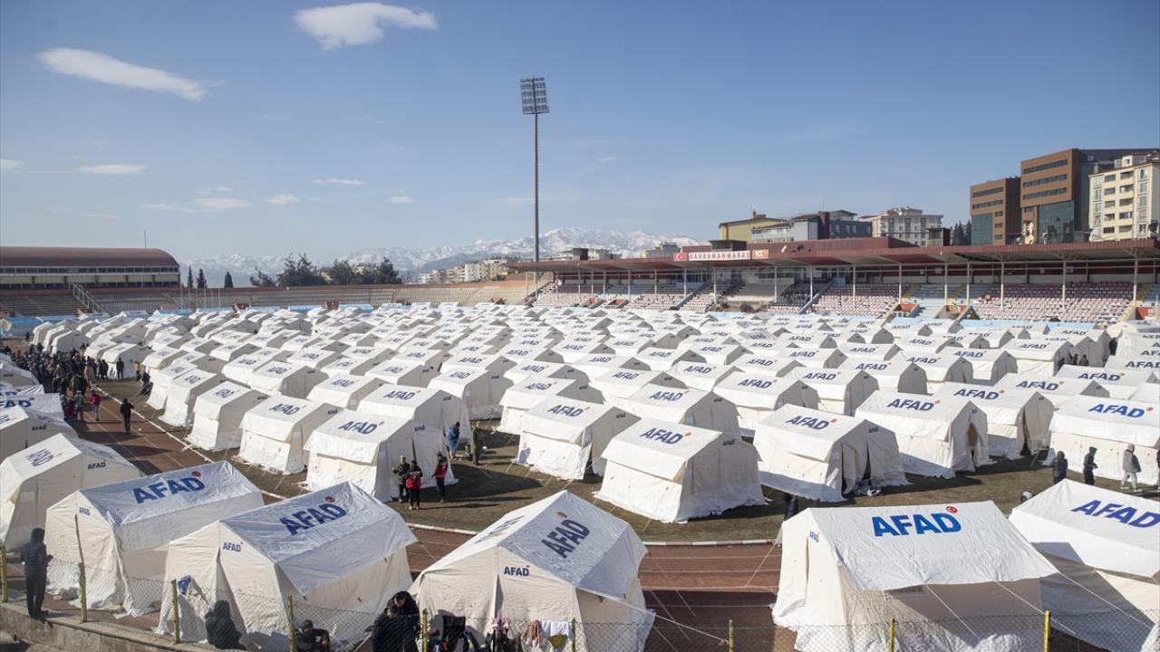 Kahramanmaraş merkezli 7,7 ve 7,6 büyüklüğündeki depremlerin ardından, Kahramanmaraş kent merkezinde bulunan 12 Şubat Stadyumu'nda depremzedeler için çadırlar kuruldu.