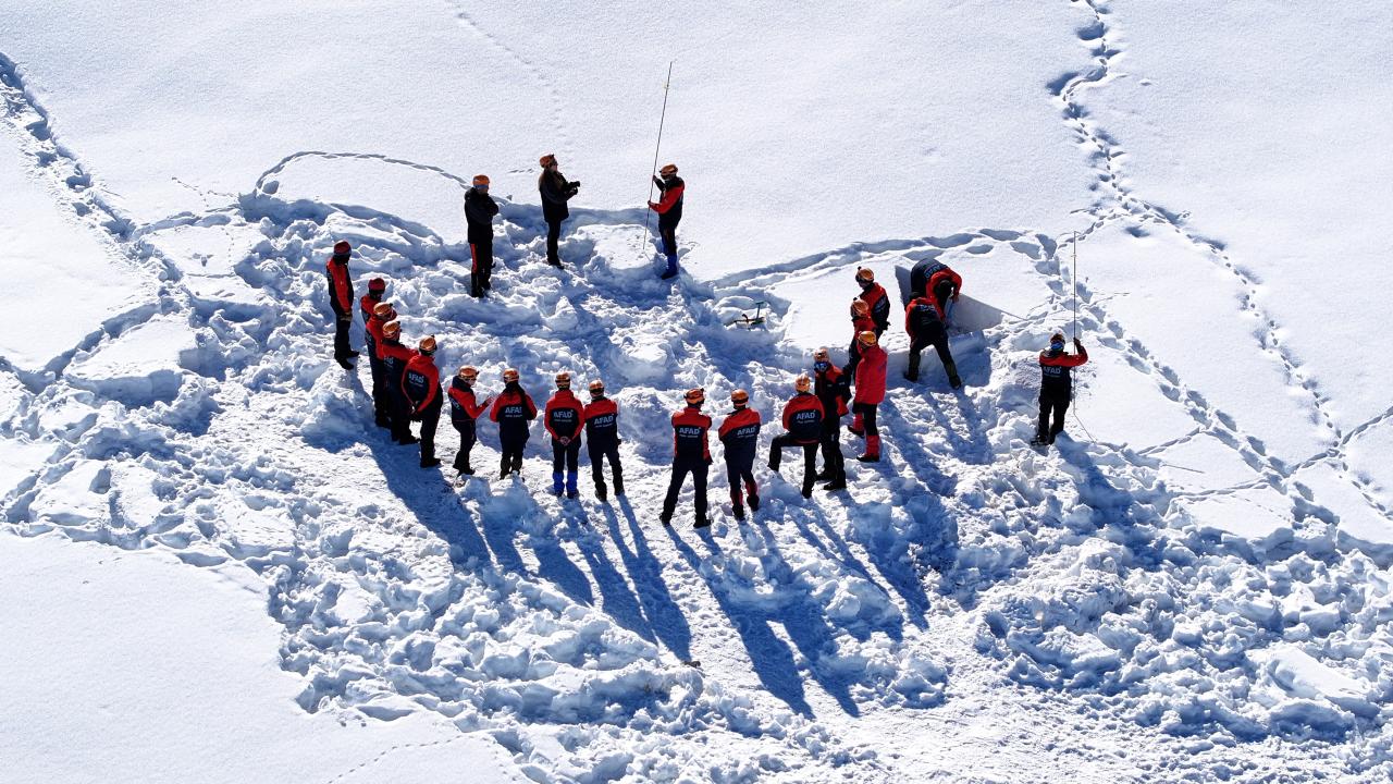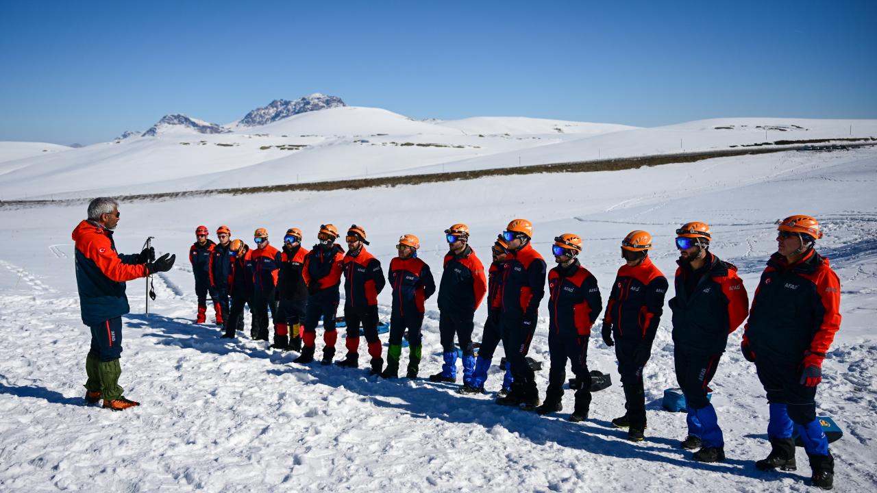 Van'da Afet ve Acil Durum Müdürlüğü koordinesinde yürütülen çalışmalar kapsamında Diyarbakır, Ağrı, Sivas ve Siirt’ten gelen 35 kişilik ekiplere, olası çığ riskine karşı eğitimler veriliyor.