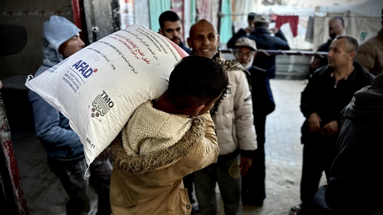 Türkiye Afet ve Acil Durum Yönetimi Başkanlığı (AFAD), İsrail saldırıları nedeniyle gıda krizinin yaşandığı Gazze`de Filistinlilere un dağıttı.