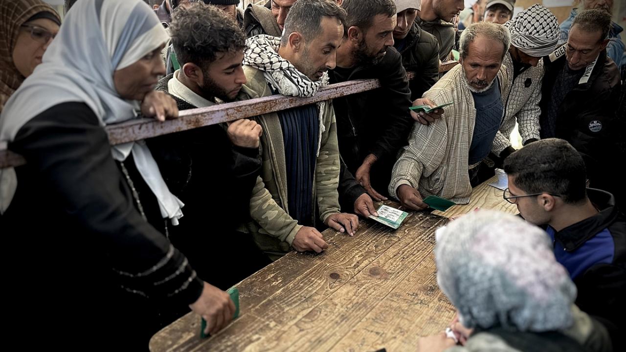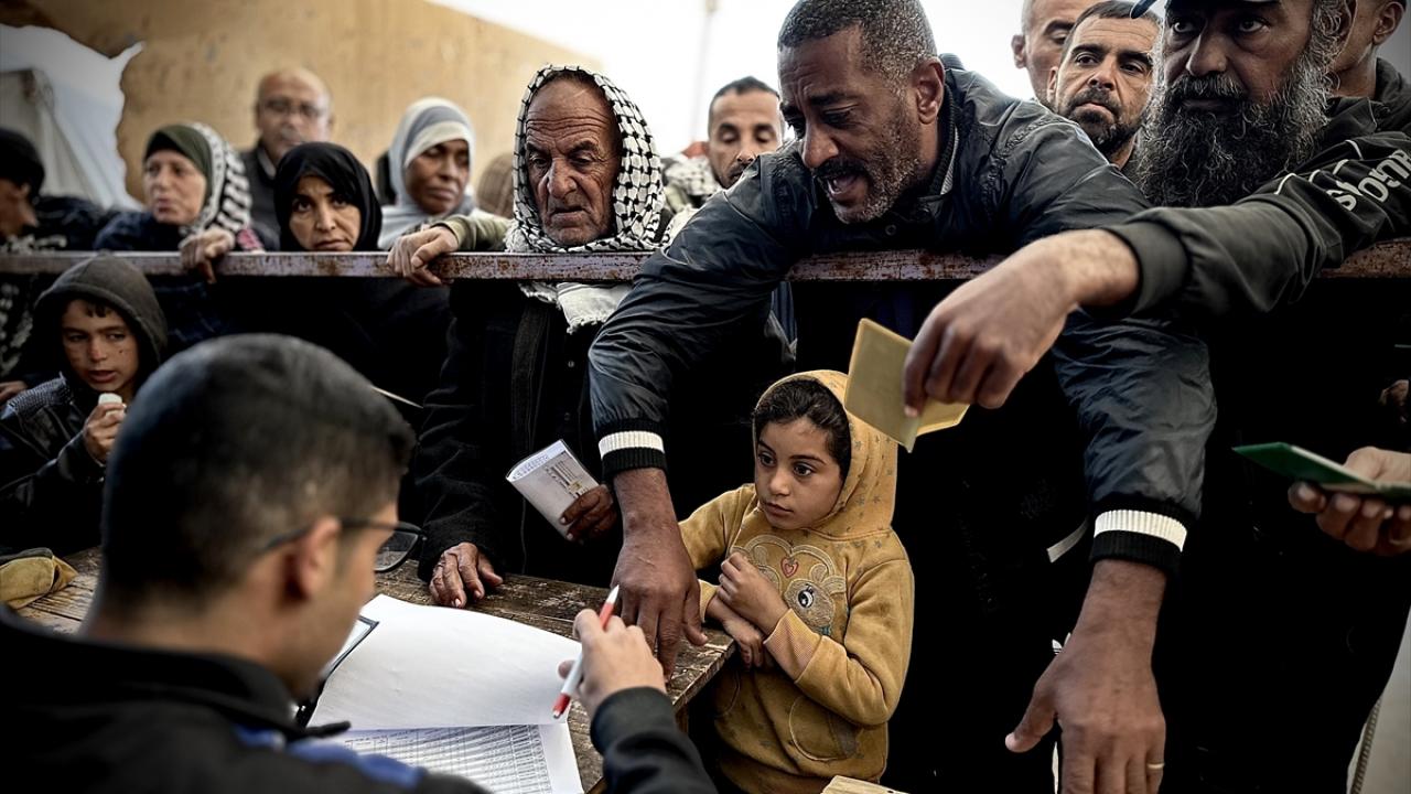 Dağıtımlardan yararlanmak isteyen çok sayıda Filistinli, Gazze`nin Han Yunus kentindeki Birleşmiş Milletler Yakın Doğu`daki Filistinli Mültecilere Yardım ve Bayındırlık Ajansı (UNRWA) dağıtım merkezine geldi.