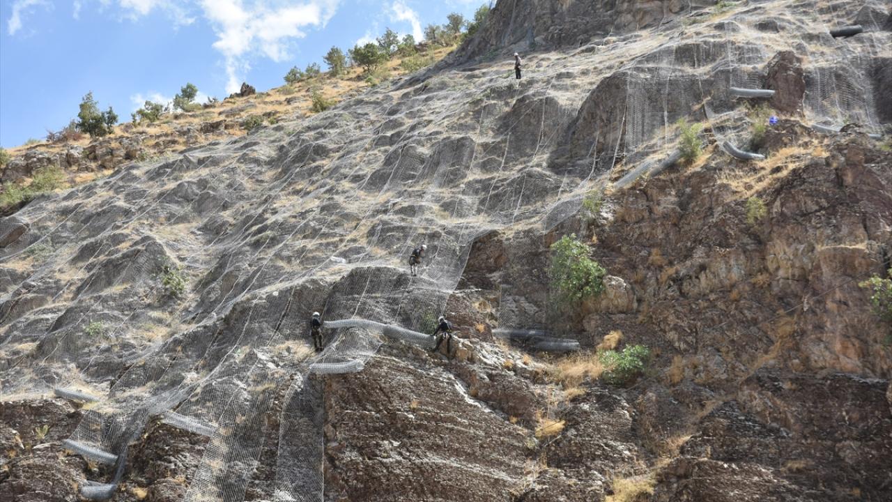 Valiliğin talimatıyla alanda incelemeler ve tespitler yapıldığını, bir rapor hazırlandığını ifade eden İşlek, "Hazırladığımız raporu Afet ve Acil Durum Yönetimi Başkanlığına sunduk. Başkanlığımızın da onayı ile uygulamaya geçtik. Yaklaşık 15 bin metrekarelik alanı örtüleme yaparak 54 yerleşim alanı, iş yeri ve ağılların güvenlik altına alınmasını sağlayacağız. Yamacın doğu tarafında ise kayaların parçalı ve dağınık olması nedeniyle bariyer sistemi kuracağız." dedi.