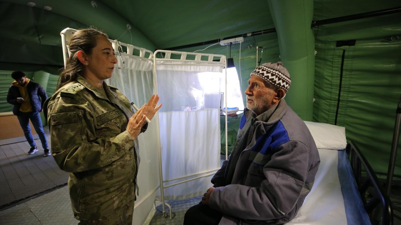 Kol ve bacak ağrısı şikayetiyle hastaneye başvuran 73 yaşındaki depremzede Durdiye Ay, Mehmetçiğin hizmetinden son derece memnun olduğunu söyledi.