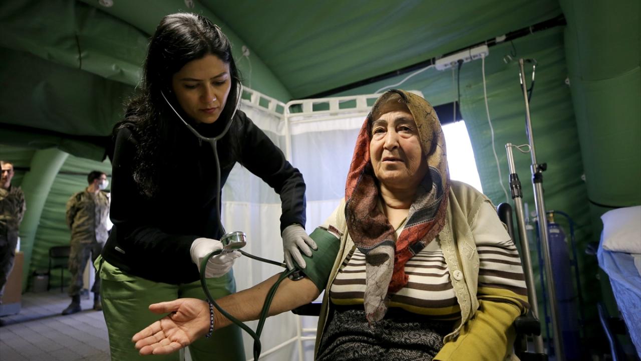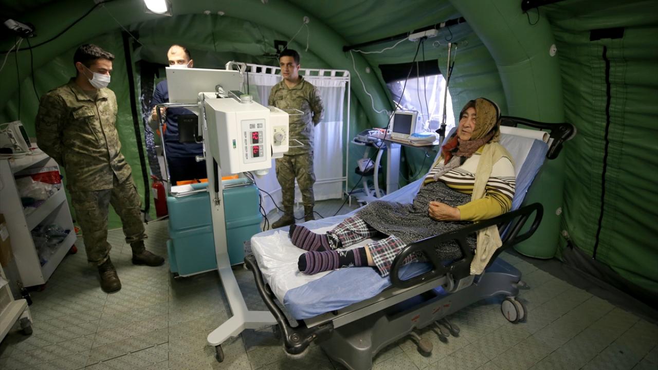 Afetzedeler Mehmetçik tarafından kurulan sahra hastanesinde tedavi oluyor