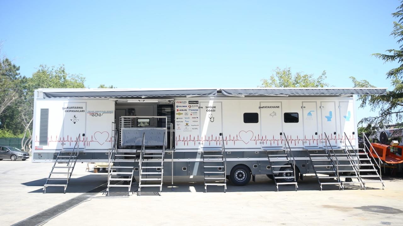 Treyler Sanayicileri Derneğince (TREDER) geliştirilen "afet treyleri", depremzedelerin sağlık, beslenme ve enerji gibi ihtiyaçlarını tek noktadan karşılama imkanı sunuyor.