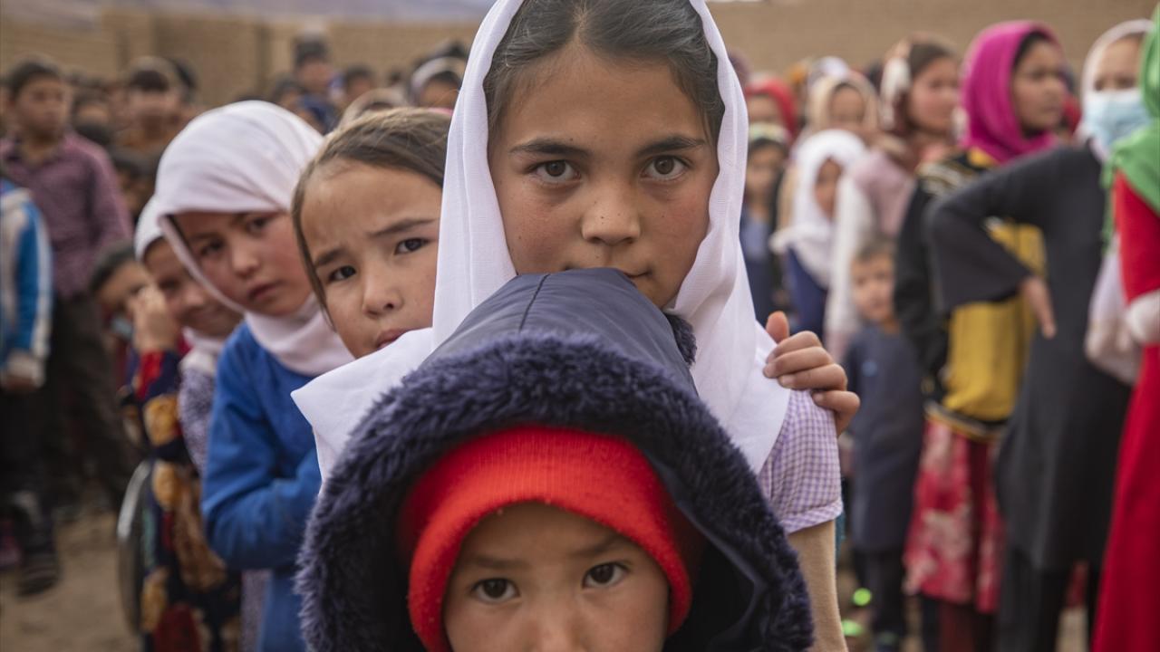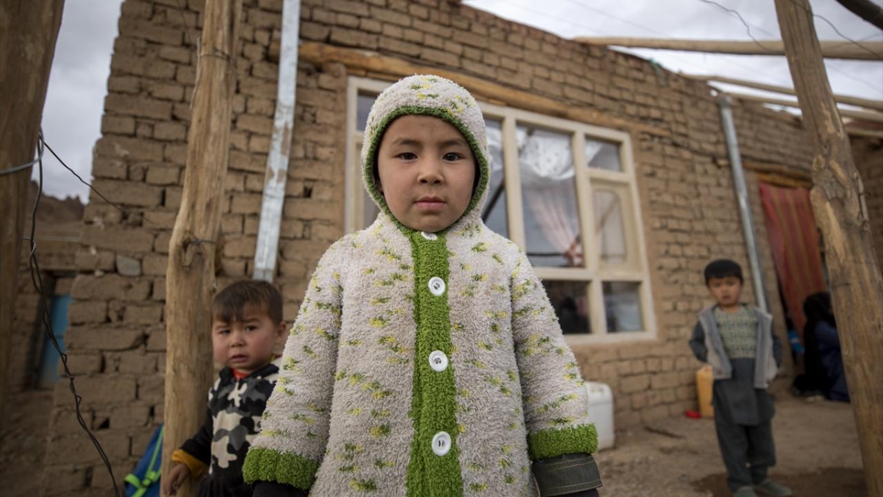 Başkent Kabil`de bir yetimhanede çocuklar kışlık kıyafet yardımı için sıra bekliyor.