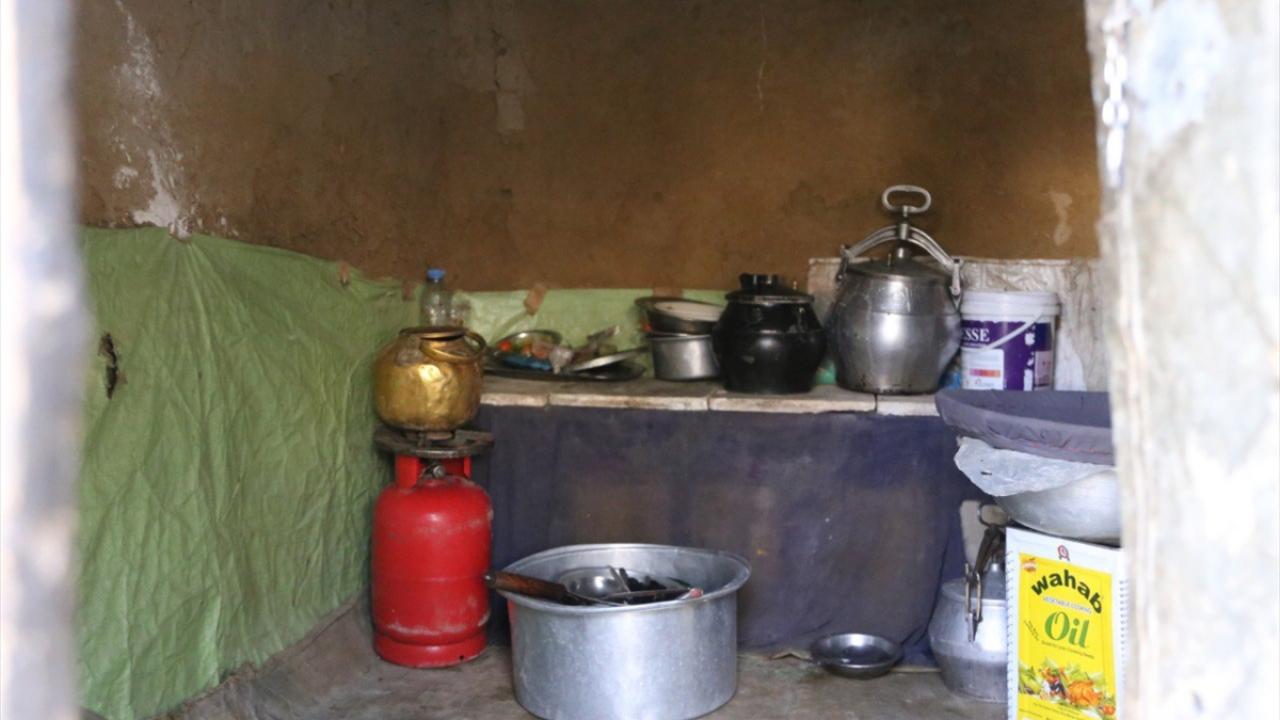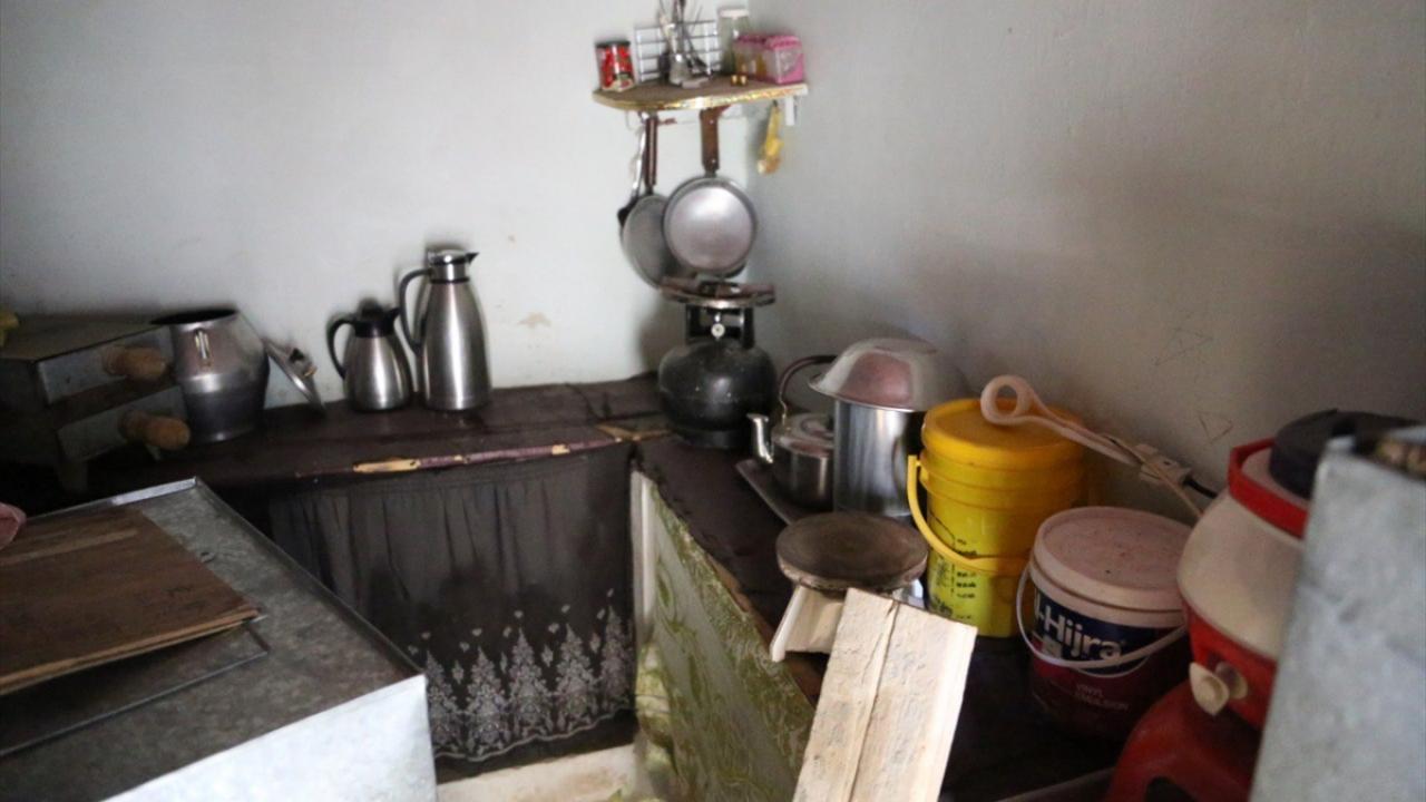 Mutfak ve banyonun kullanılamaz halde olduğu gözlenen evde un, şeker ve yağ gibi temel ihtiyaç maddelerinden hiçbirisinin olmadığı dikkati çekti.