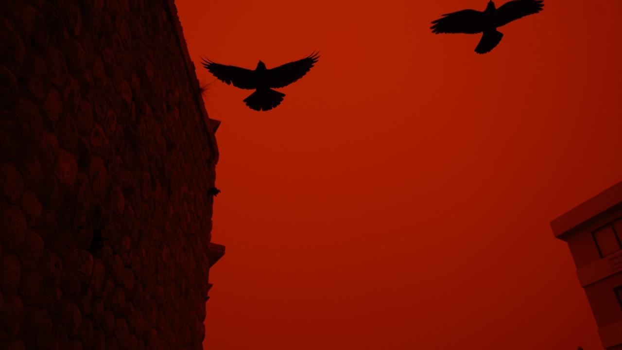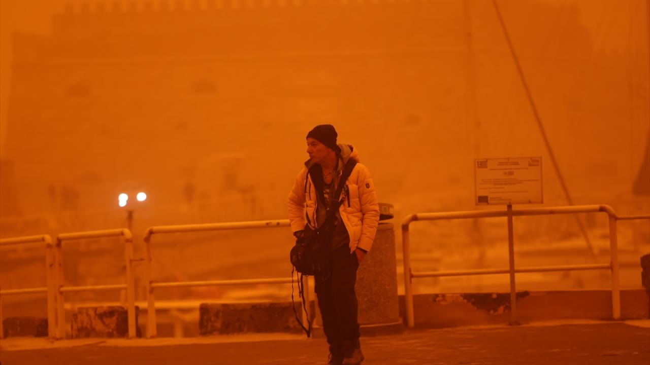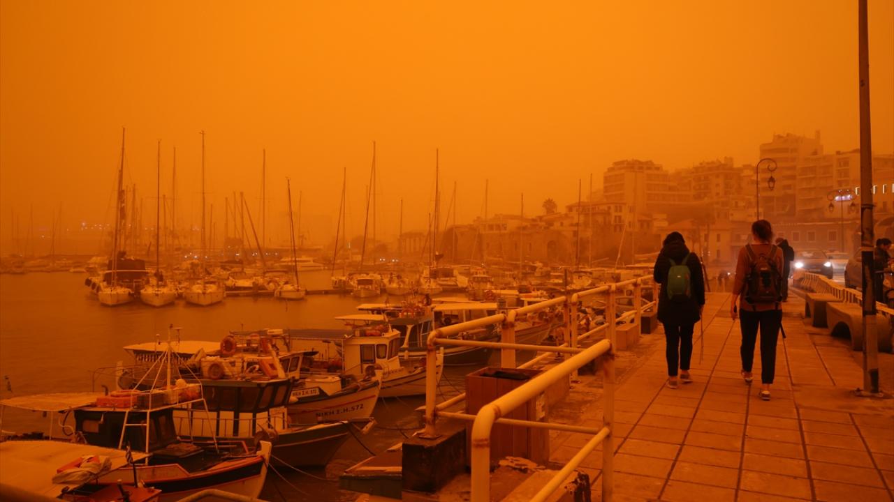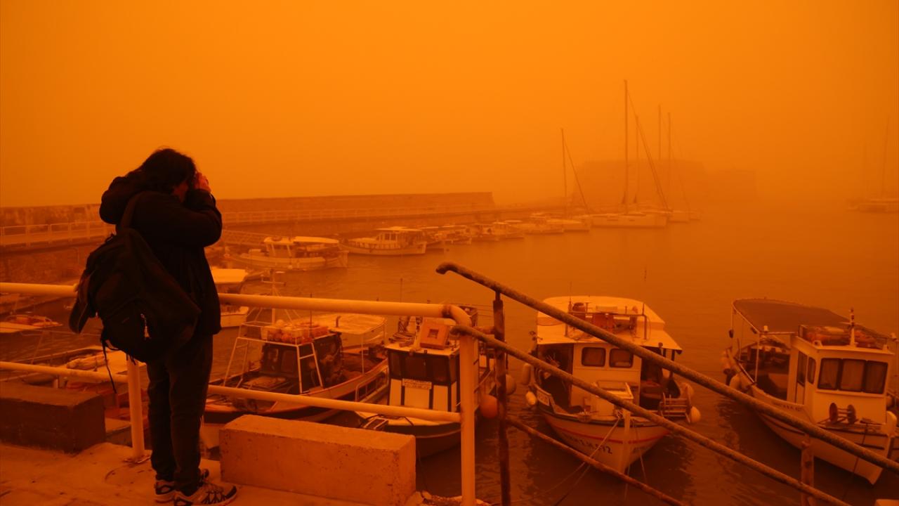 Ülkenin güneyindeki Girit Adası’nda çöl tozu nedeniyle gökyüzü kırmızıya büründü.