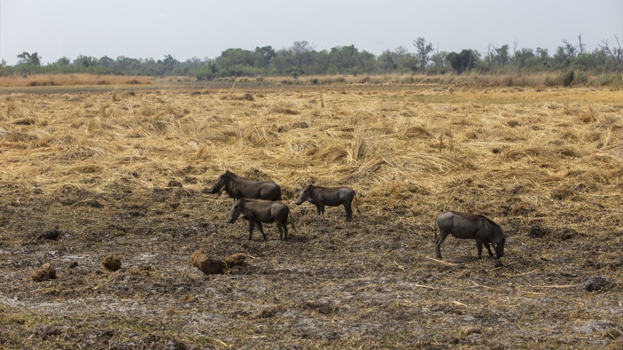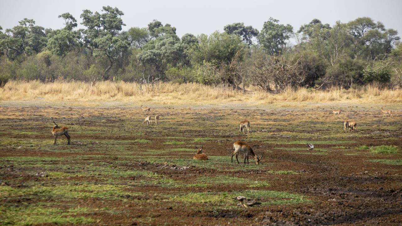 Kalahari Havzası`na dökülen suların kısa sürede buharlaşmasıyla hazirandan itibaren kurumaya başlayan delta, özellikle temmuz ila ağustos aylarında on binlerce hayvanla dolup taşıyor.