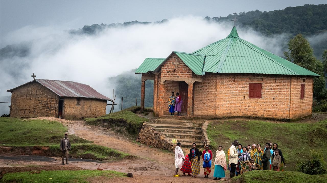 Ülkenin güneyinde bulunan dağ köylerinde bir kilise görülüyor.