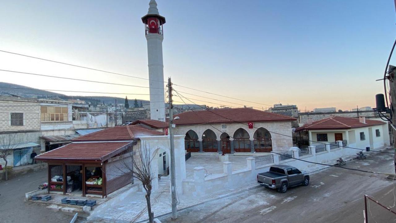 Suriye'nin Afrin bölgesinde bulunan tarihi Ömer Bin Hattab Camii ve Nebi Huri Türbesi'nin, Hatay Vakıflar Bölge Müdürlüğünce restorasyonu tamamlandı.